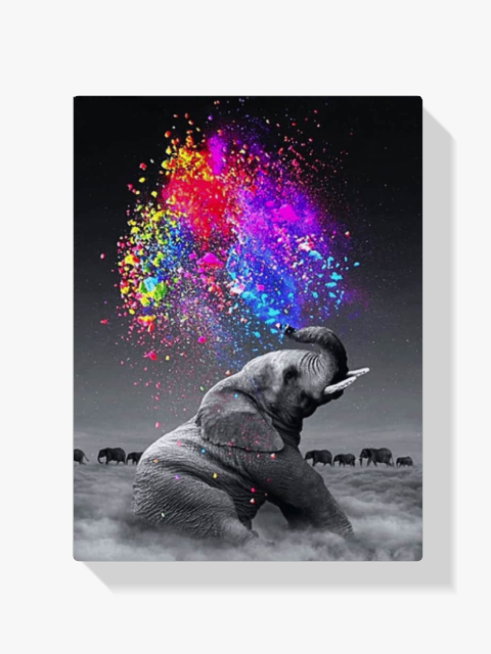 ¿Estás buscando una salida creativa, una actividad divertida para toda la familia? Esto es posible con nuestro set completo y profesional de Diamond Painting – Elefante colorido. Con él podrás crear los más bellos cuadros en casa. El lienzo de alta calidad y transparencia te permite realizar una obra de arte impresionante en poco tiempo. Libera tu creatividad con tus propias creaciones. Diamond Painting es el pasatiempo perfecto para ti solo o para disfrutar en familia.