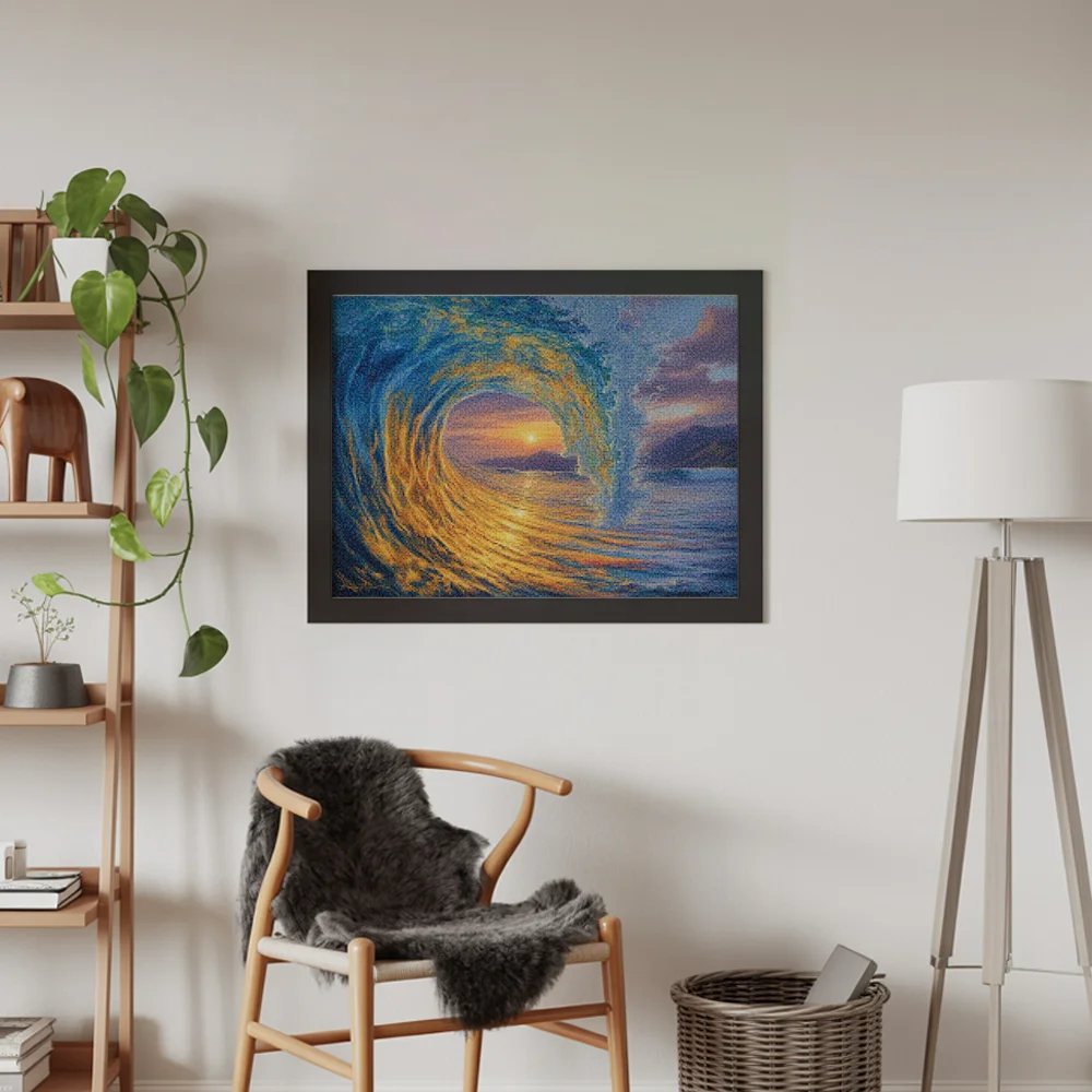 Nuestros kits de Diamond Painting son muy fáciles de usar, así que puedes comenzar a crear desde el primer momento. Antes de empezar a pintar, asegúrate de que el lienzo esté plano y sin arrugas. Alisar el lienzo facilita la colocación de las piedras y la aplicación precisa de los colores. El resto es simple: pon algo de música, enciende una serie, y ¡a pintar! Se recomienda completar primero todos los cuadros de un color antes de pasar al siguiente. Esto te permitirá no tener que limpiar el aplicador tan a menudo y lograr los mejores resultados. Una vez terminada tu pintura, déjala secar al menos un día para evitar manchas y obtener el mejor resultado. Una vez seca, puedes colgarla donde desees.