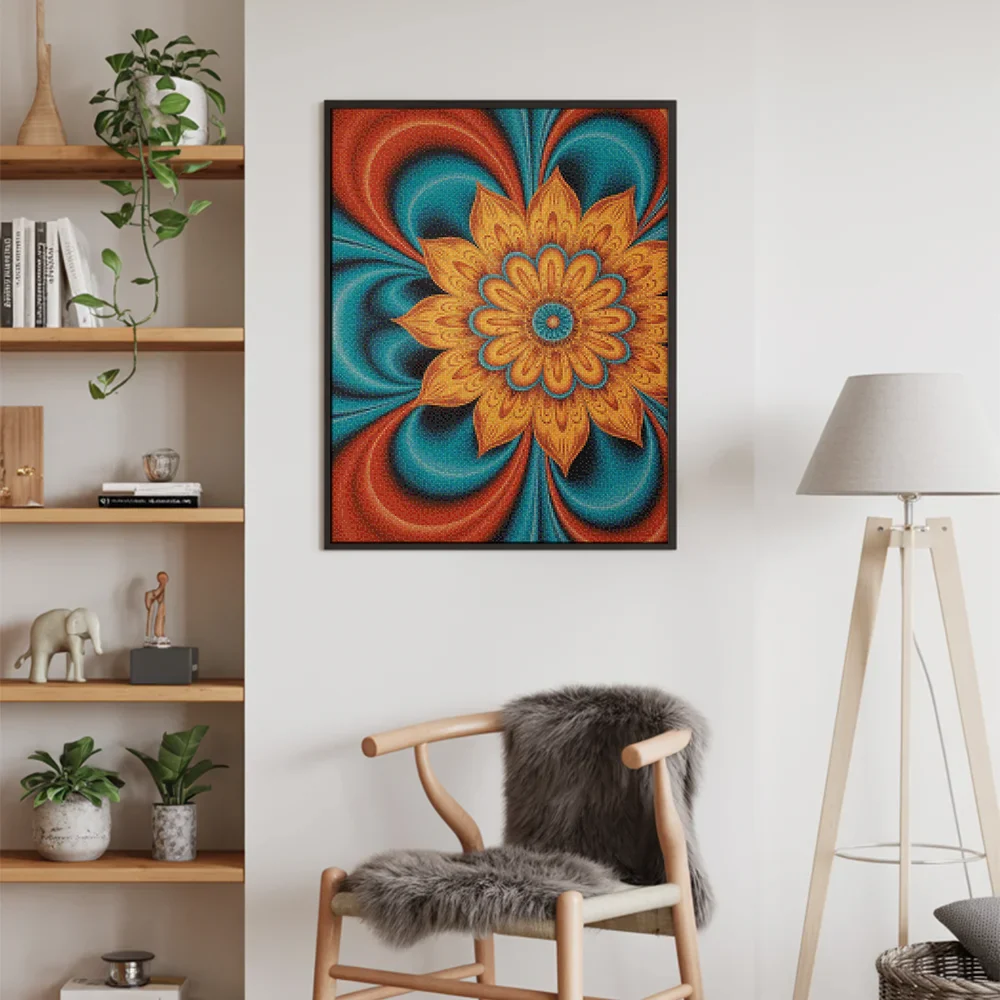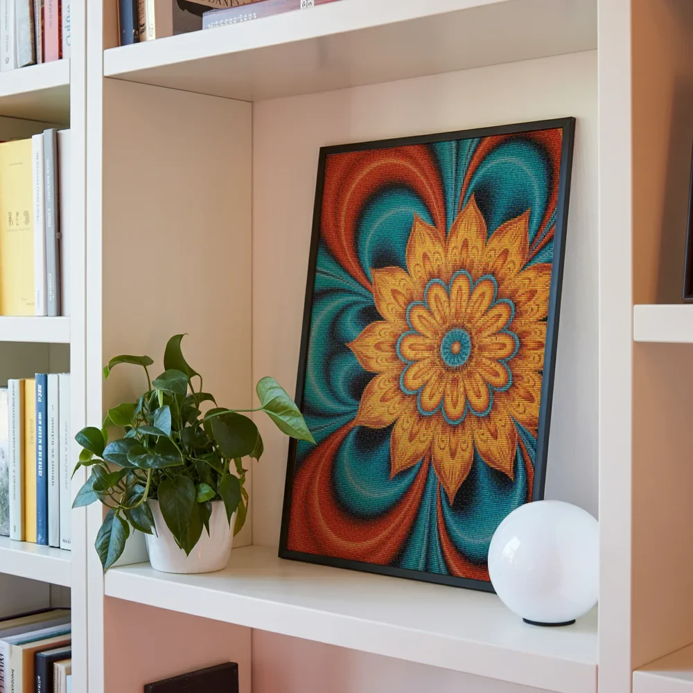 Nuestros kits de Diamond Painting son muy fáciles de usar, así que puedes comenzar a crear desde el primer momento. Antes de empezar a pintar, asegúrate de que el lienzo esté plano y sin arrugas. Alisar el lienzo facilita la colocación de las piedras y la aplicación precisa de los colores. El resto es simple: pon algo de música, enciende una serie, y ¡a pintar! Se recomienda completar primero todos los cuadros de un color antes de pasar al siguiente. Esto te permitirá no tener que limpiar el aplicador tan a menudo y lograr los mejores resultados. Una vez terminada tu pintura, déjala secar al menos un día para evitar manchas y obtener el mejor resultado. Una vez seca, puedes colgarla donde desees.