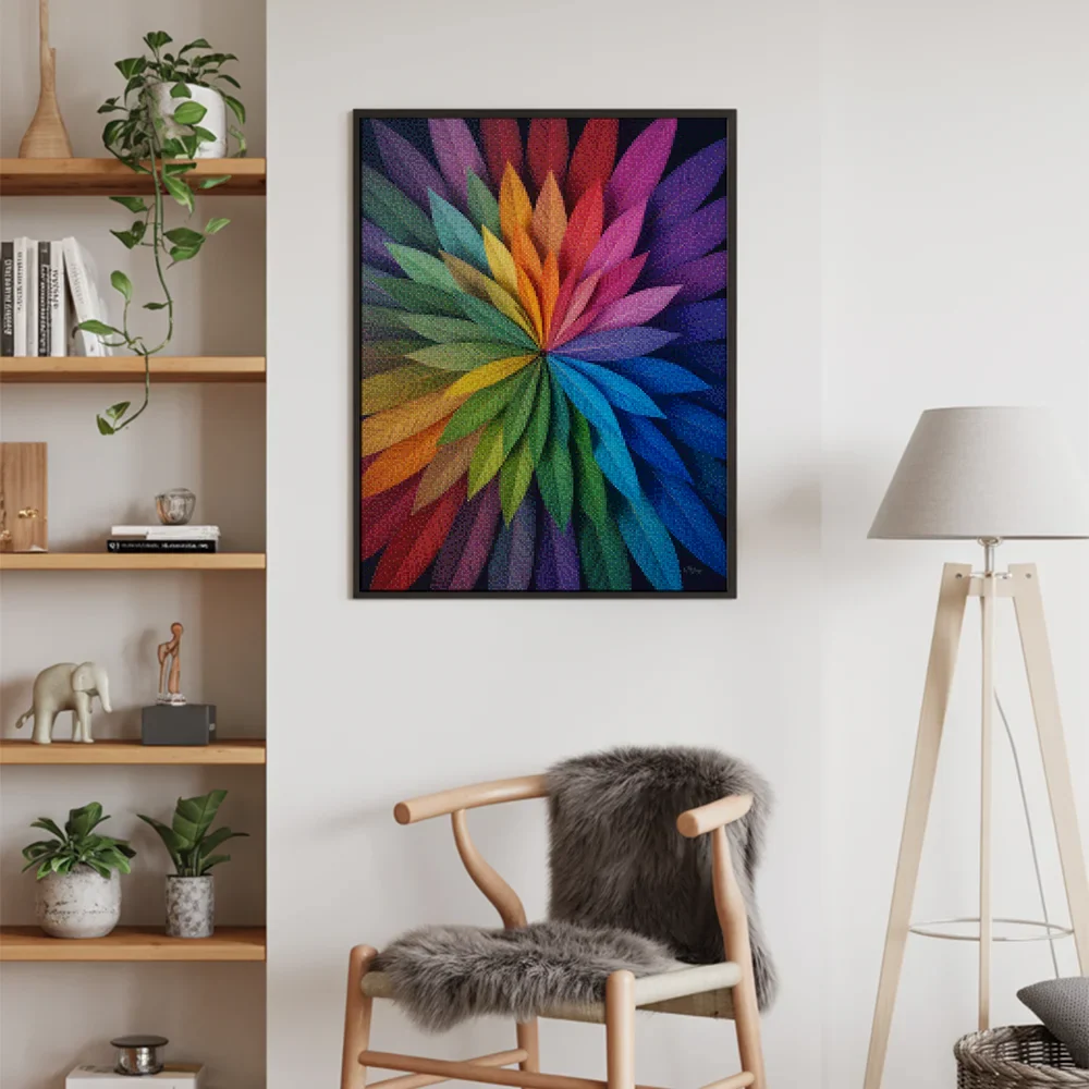 ¿Estás buscando una salida creativa, una actividad divertida para toda la familia? Esto es posible con nuestro set completo y profesional de Diamond Painting – Explosión de hojas vivas – Mandalas. Con él podrás crear los más bellos cuadros en casa. El lienzo de alta calidad y transparencia te permite realizar una obra de arte impresionante en poco tiempo. Libera tu creatividad con tus propias creaciones. Diamond Painting es el pasatiempo perfecto para ti solo o para disfrutar en familia.