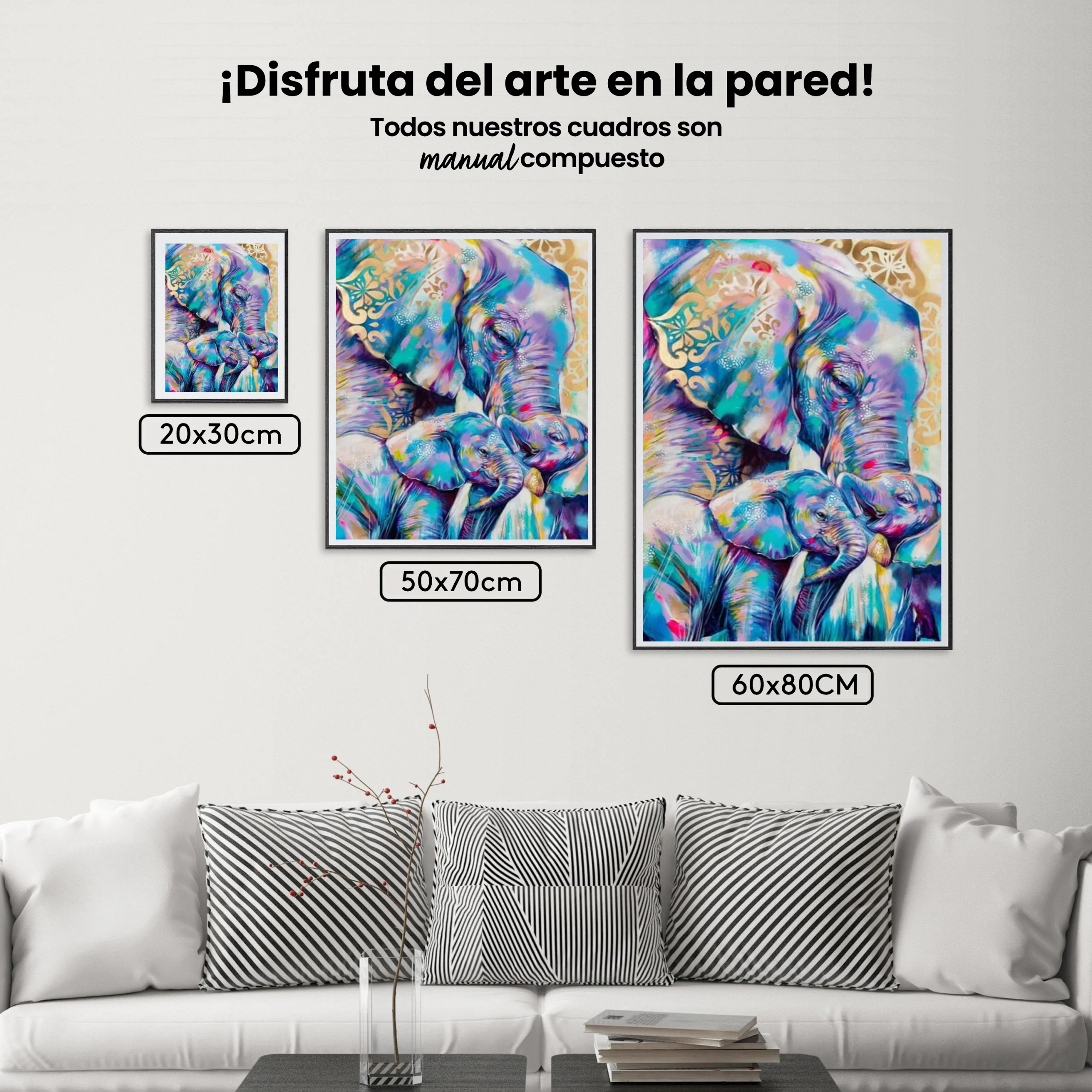 ¿Estás buscando una salida creativa, una actividad divertida para toda la familia? Esto es posible con nuestro set completo y profesional de Diamond Painting – Familia de elefantes de colores. Con él podrás crear los más bellos cuadros en casa. El lienzo de alta calidad y transparencia te permite realizar una obra de arte impresionante en poco tiempo. Libera tu creatividad con tus propias creaciones. Diamond Painting es el pasatiempo perfecto para ti solo o para disfrutar en familia.