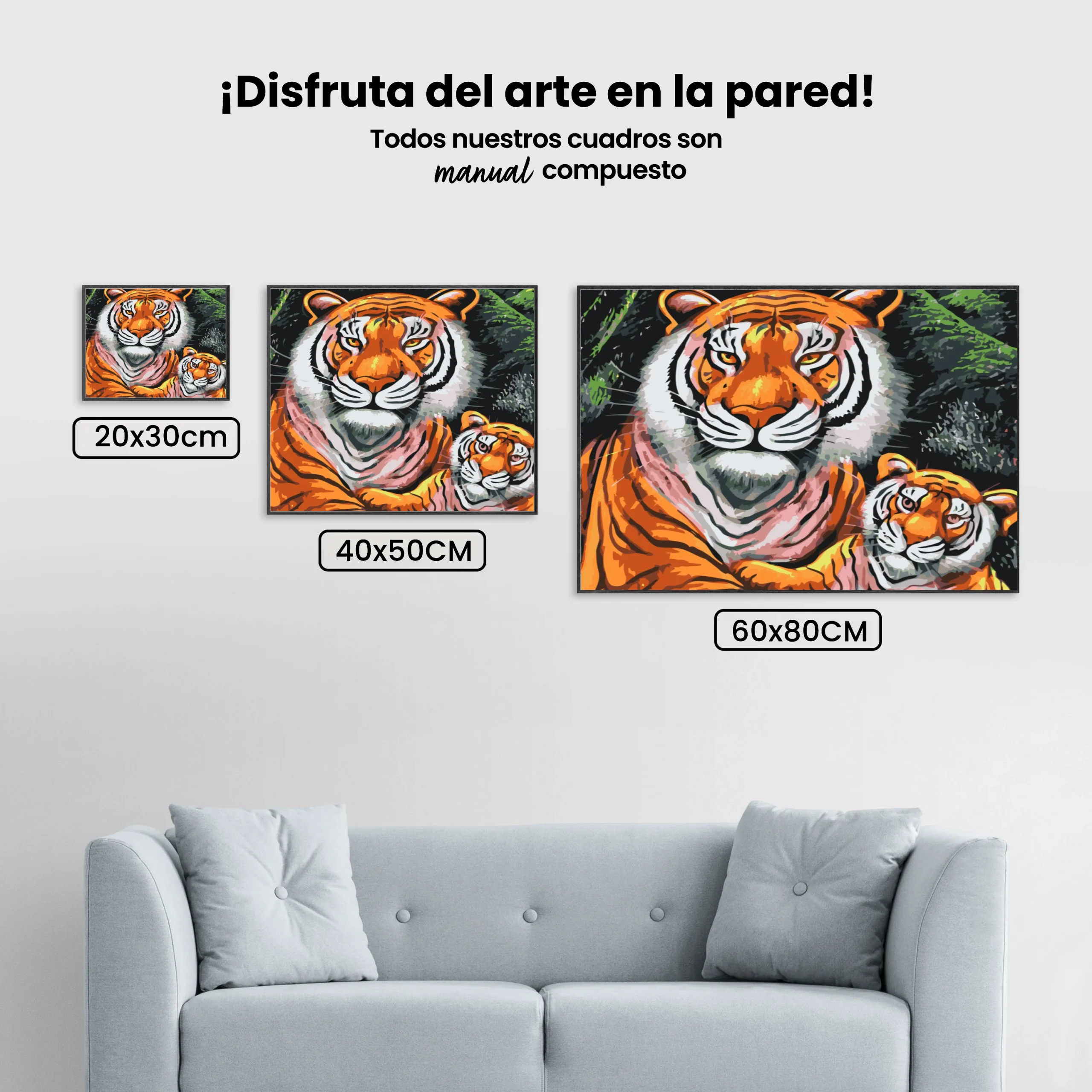 ¿Estás buscando una salida creativa, una actividad divertida para toda la familia? Esto es posible con nuestro set completo y profesional de Diamond Painting – Familia tigre. Con él podrás crear los más bellos cuadros en casa. El lienzo de alta calidad y transparencia te permite realizar una obra de arte impresionante en poco tiempo. Libera tu creatividad con tus propias creaciones. Diamond Painting es el pasatiempo perfecto para ti solo o para disfrutar en familia.