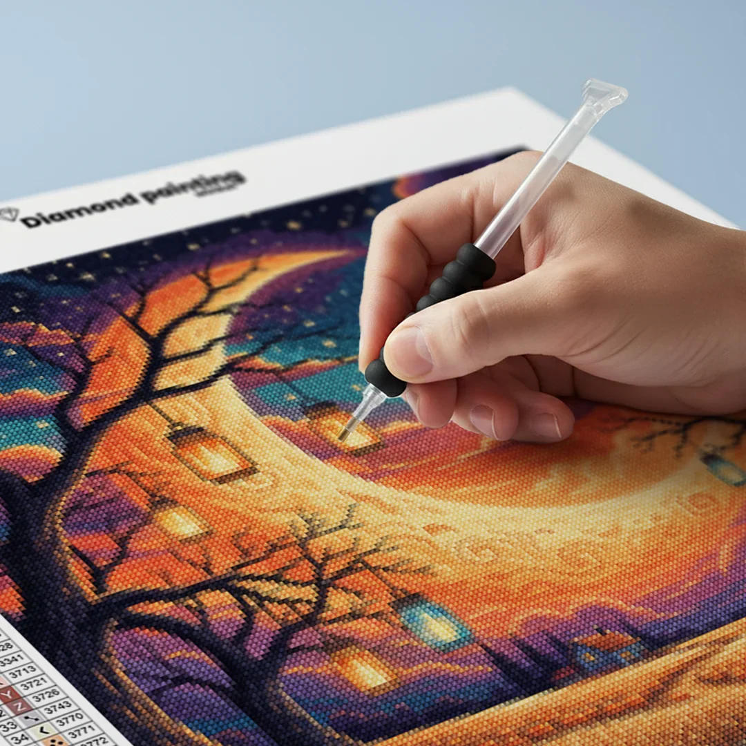 Nuestros kits de Diamond Painting son muy fáciles de usar, así que puedes comenzar a crear desde el primer momento. Antes de empezar a pintar, asegúrate de que el lienzo esté plano y sin arrugas. Alisar el lienzo facilita la colocación de las piedras y la aplicación precisa de los colores. El resto es simple: pon algo de música, enciende una serie, y ¡a pintar! Se recomienda completar primero todos los cuadros de un color antes de pasar al siguiente. Esto te permitirá no tener que limpiar el aplicador tan a menudo y lograr los mejores resultados. Una vez terminada tu pintura, déjala secar al menos un día para evitar manchas y obtener el mejor resultado. Una vez seca, puedes colgarla donde desees.