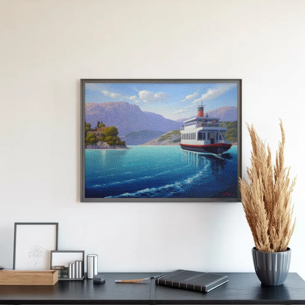 ¿Estás buscando una salida creativa, una actividad divertida para toda la familia? Esto es posible con nuestro set completo y profesional de Diamond Painting – Ferry a ninguna parte. Con él podrás crear los más bellos cuadros en casa. El lienzo de alta calidad y transparencia te permite realizar una obra de arte impresionante en poco tiempo. Libera tu creatividad con tus propias creaciones. Diamond Painting es el pasatiempo perfecto para ti solo o para disfrutar en familia.