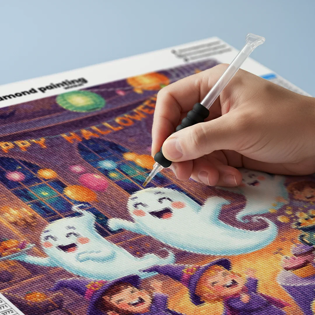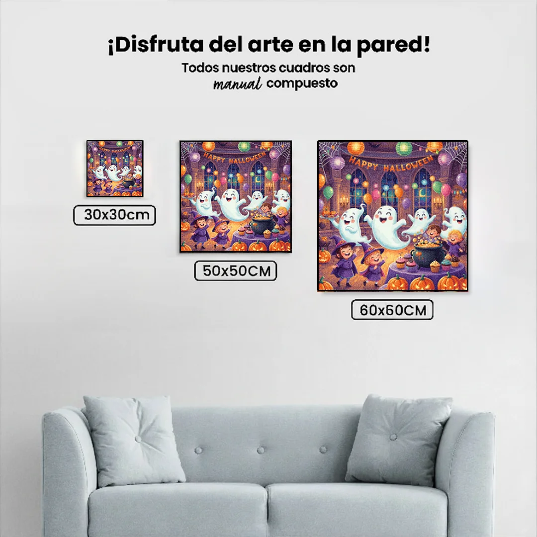 ¿Estás buscando una salida creativa, una actividad divertida para toda la familia? Esto es posible con nuestro set completo y profesional de Diamond Painting – Fiesta de fantasmas amistosos. Con él podrás crear los más bellos cuadros en casa. El lienzo de alta calidad y transparencia te permite realizar una obra de arte impresionante en poco tiempo. Libera tu creatividad con tus propias creaciones. Diamond Painting es el pasatiempo perfecto para ti solo o para disfrutar en familia.