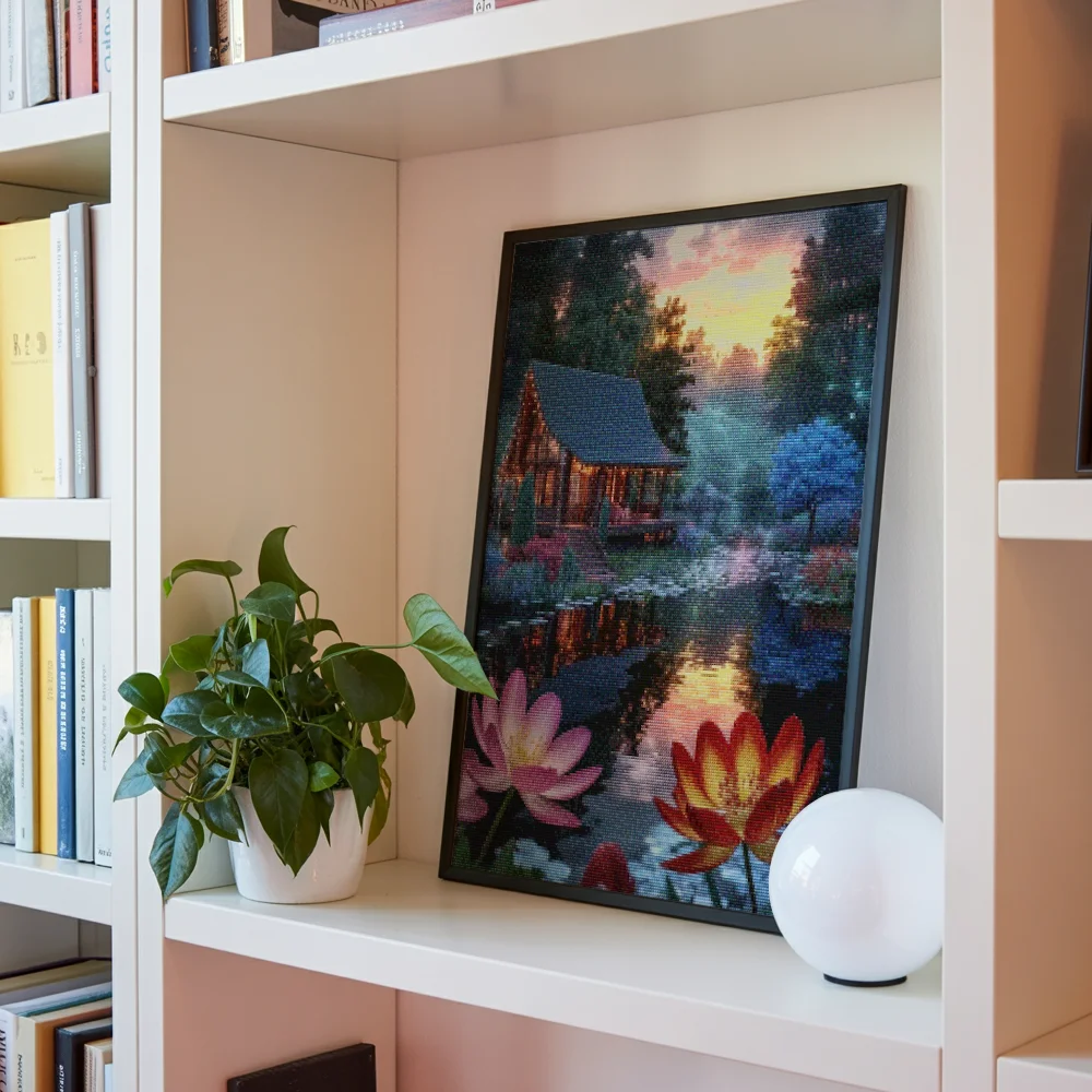 Nuestros kits de Diamond Painting son muy fáciles de usar, así que puedes comenzar a crear desde el primer momento. Antes de empezar a pintar, asegúrate de que el lienzo esté plano y sin arrugas. Alisar el lienzo facilita la colocación de las piedras y la aplicación precisa de los colores. El resto es simple: pon algo de música, enciende una serie, y ¡a pintar! Se recomienda completar primero todos los cuadros de un color antes de pasar al siguiente. Esto te permitirá no tener que limpiar el aplicador tan a menudo y lograr los mejores resultados. Una vez terminada tu pintura, déjala secar al menos un día para evitar manchas y obtener el mejor resultado. Una vez seca, puedes colgarla donde desees.