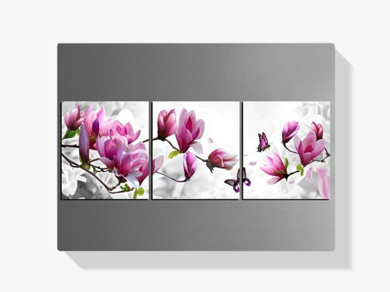 ¿Estás buscando una salida creativa, una actividad divertida para toda la familia? Esto es posible con nuestro set completo y profesional de Diamond Painting – Flores rosas con mariposa 3 paneles. Con él podrás crear los más bellos cuadros en casa. El lienzo de alta calidad y transparencia te permite realizar una obra de arte impresionante en poco tiempo. Libera tu creatividad con tus propias creaciones. Diamond Painting es el pasatiempo perfecto para ti solo o para disfrutar en familia.
