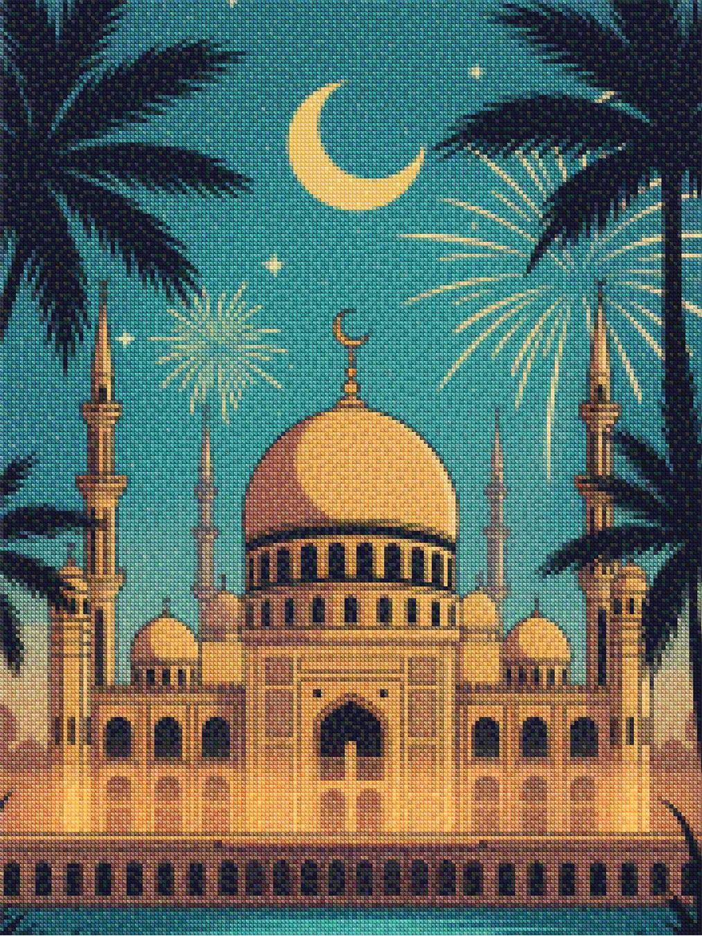 ¿Estás buscando una salida creativa, una actividad divertida para toda la familia? Esto es posible con nuestro set completo y profesional de Diamond Painting – Fuegos Artificiales de Mezquita. Con él podrás crear los más bellos cuadros en casa. El lienzo de alta calidad y transparencia te permite realizar una obra de arte impresionante en poco tiempo. Libera tu creatividad con tus propias creaciones. Diamond Painting es el pasatiempo perfecto para ti solo o para disfrutar en familia.