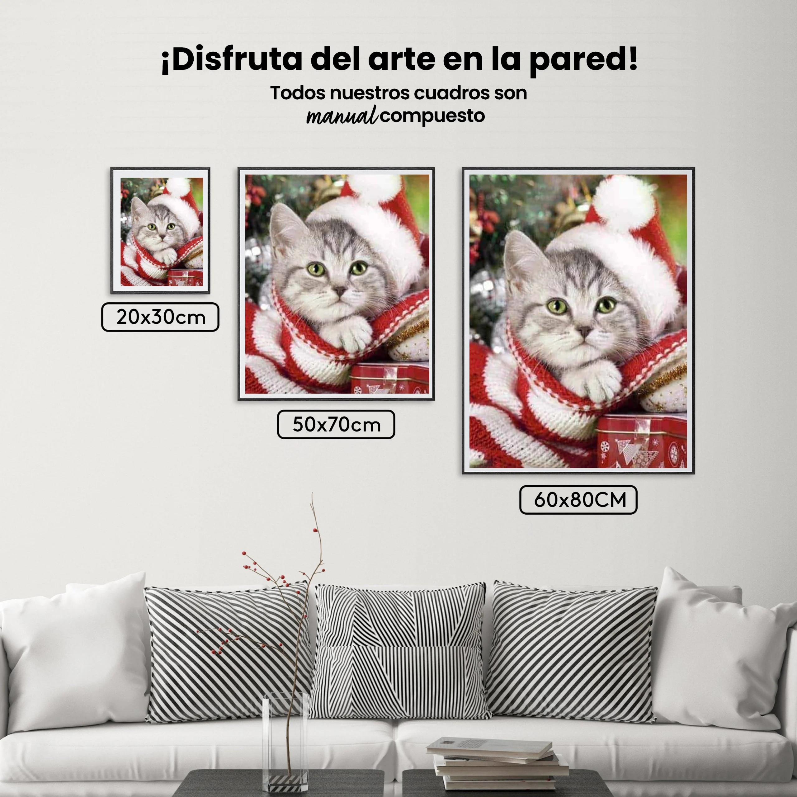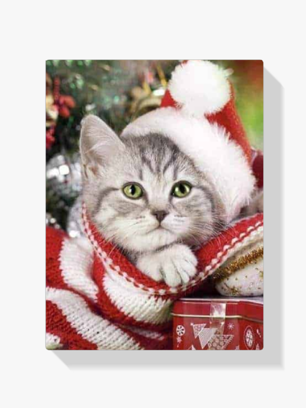 ¿Estás buscando una salida creativa, una actividad divertida para toda la familia? Esto es posible con nuestro set completo y profesional de Diamond Painting – Gatito con gorro de Papá Noel. Con él podrás crear los más bellos cuadros en casa. El lienzo de alta calidad y transparencia te permite realizar una obra de arte impresionante en poco tiempo. Libera tu creatividad con tus propias creaciones. Diamond Painting es el pasatiempo perfecto para ti solo o para disfrutar en familia.