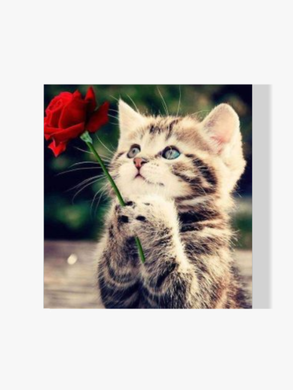 ¿Estás buscando una salida creativa, una actividad divertida para toda la familia? Esto es posible con nuestro set completo y profesional de Diamond Painting – Gatito con rosa. Con él podrás crear los más bellos cuadros en casa. El lienzo de alta calidad y transparencia te permite realizar una obra de arte impresionante en poco tiempo. Libera tu creatividad con tus propias creaciones. Diamond Painting es el pasatiempo perfecto para ti solo o para disfrutar en familia.