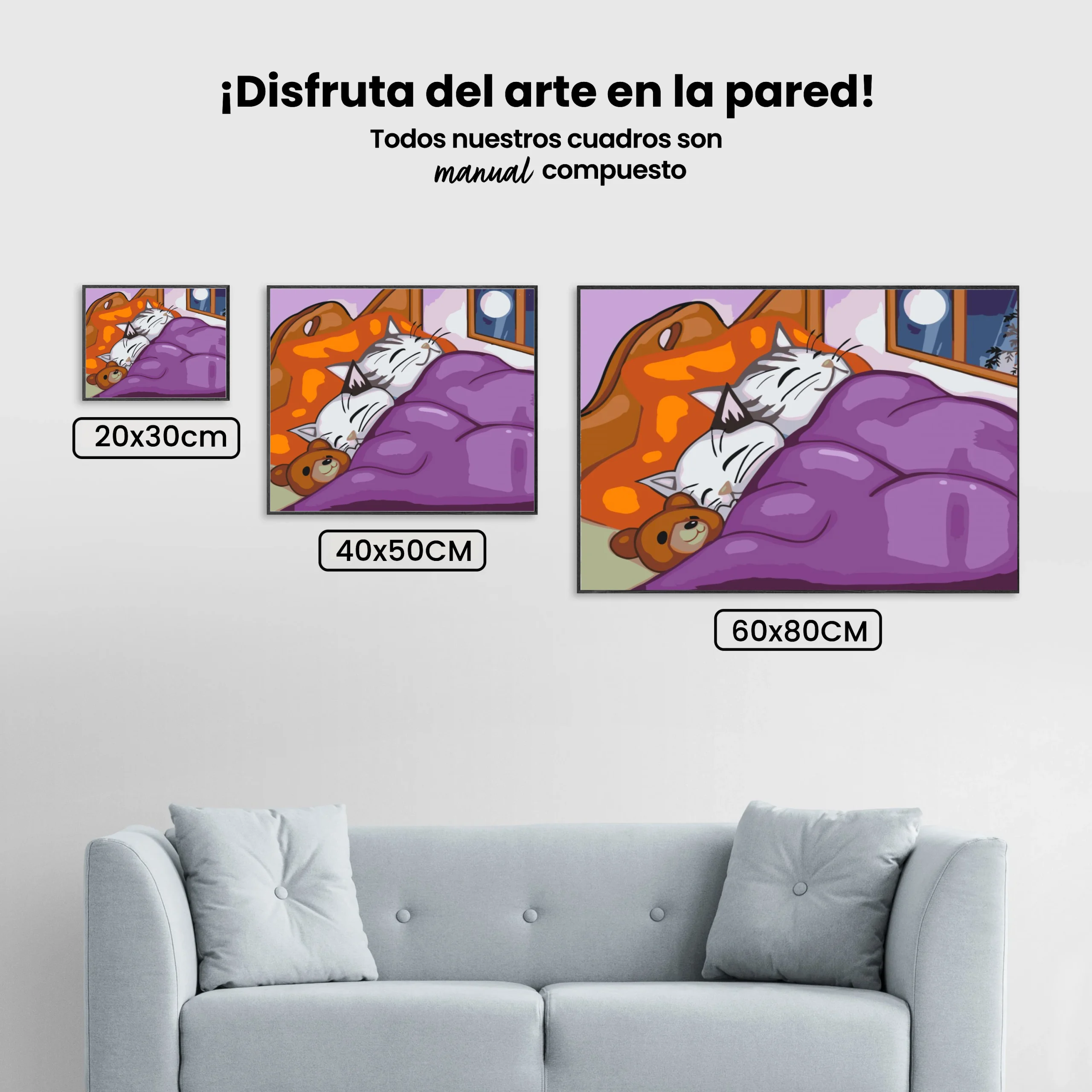 ¿Estás buscando una salida creativa, una actividad divertida para toda la familia? Esto es posible con nuestro set completo y profesional de Diamond Painting – Gatitos y osito de peluche en una cama. Con él podrás crear los más bellos cuadros en casa. El lienzo de alta calidad y transparencia te permite realizar una obra de arte impresionante en poco tiempo. Libera tu creatividad con tus propias creaciones. Diamond Painting es el pasatiempo perfecto para ti solo o para disfrutar en familia.