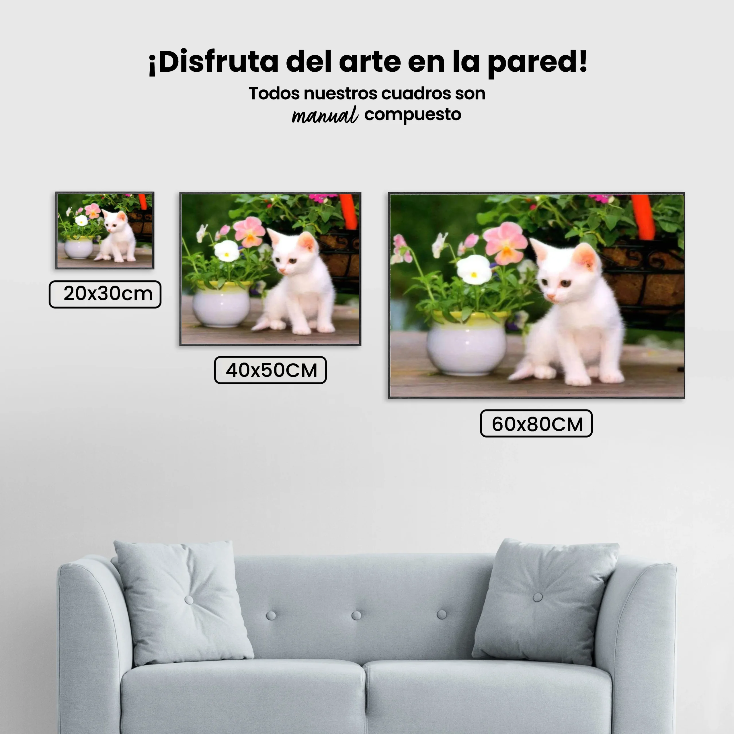 ¿Estás buscando una salida creativa, una actividad divertida para toda la familia? Esto es posible con nuestro set completo y profesional de Diamond Painting – Gato blanco con flores en un florero. Con él podrás crear los más bellos cuadros en casa. El lienzo de alta calidad y transparencia te permite realizar una obra de arte impresionante en poco tiempo. Libera tu creatividad con tus propias creaciones. Diamond Painting es el pasatiempo perfecto para ti solo o para disfrutar en familia.