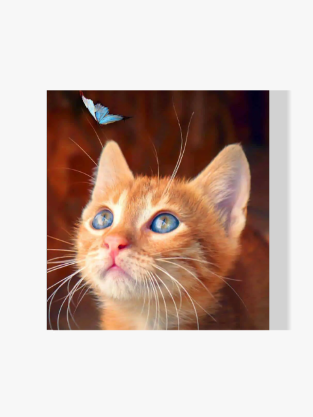 Pintura Diamante – Gato marrón con mariposa azul