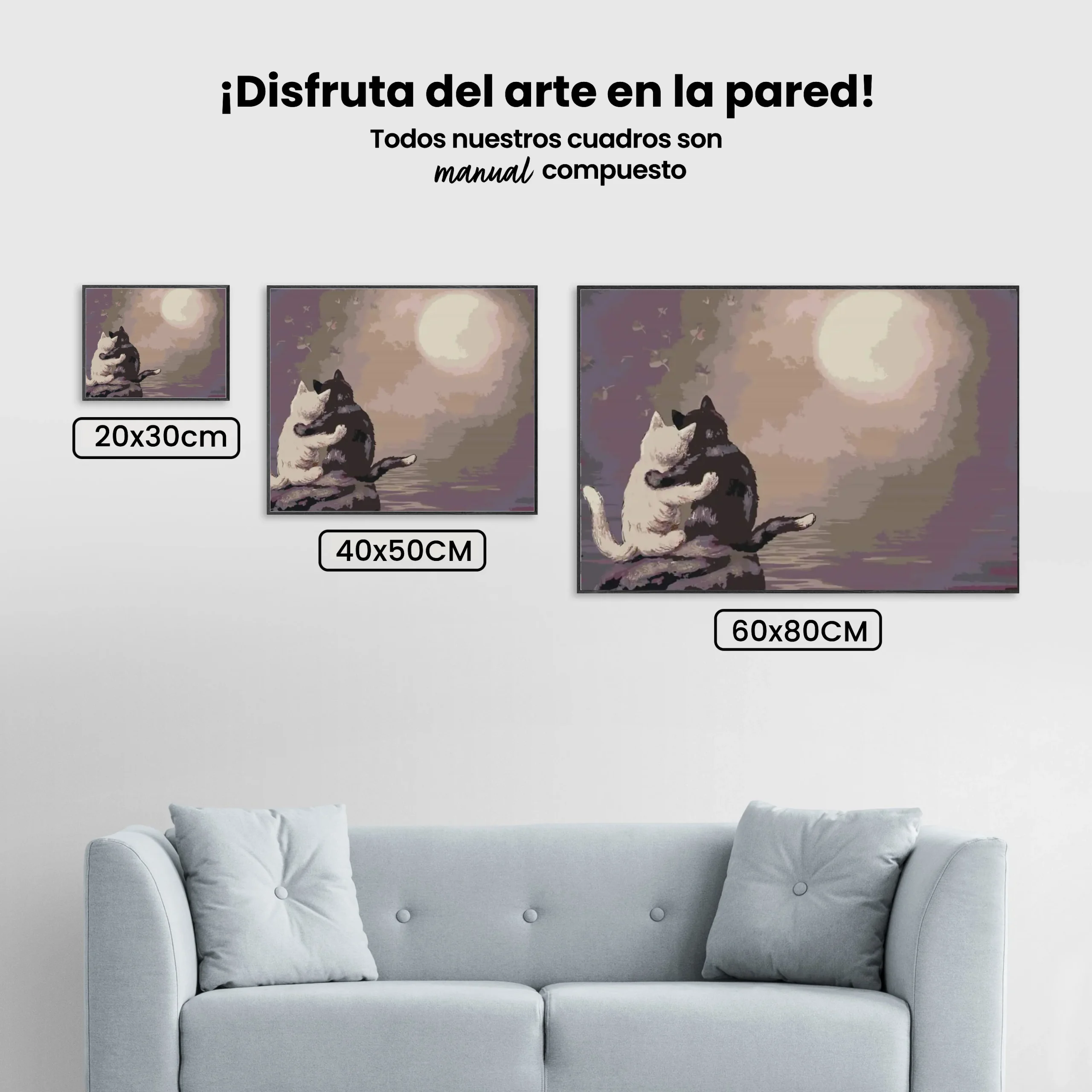 ¿Estás buscando una salida creativa, una actividad divertida para toda la familia? Esto es posible con nuestro set completo y profesional de Diamond Painting – Gatos en luna llena. Con él podrás crear los más bellos cuadros en casa. El lienzo de alta calidad y transparencia te permite realizar una obra de arte impresionante en poco tiempo. Libera tu creatividad con tus propias creaciones. Diamond Painting es el pasatiempo perfecto para ti solo o para disfrutar en familia.