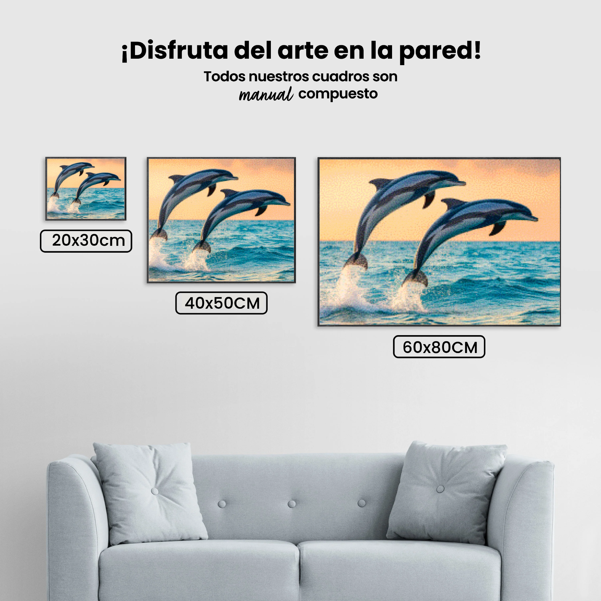 ¿Estás buscando una salida creativa, una actividad divertida para toda la familia? Esto es posible con nuestro set completo y profesional de Diamond Painting – Gracioso dúo de delfines saltando fuera del mar V1. Con él podrás crear los más bellos cuadros en casa. El lienzo de alta calidad y transparencia te permite realizar una obra de arte impresionante en poco tiempo. Libera tu creatividad con tus propias creaciones. Diamond Painting es el pasatiempo perfecto para ti solo o para disfrutar en familia.