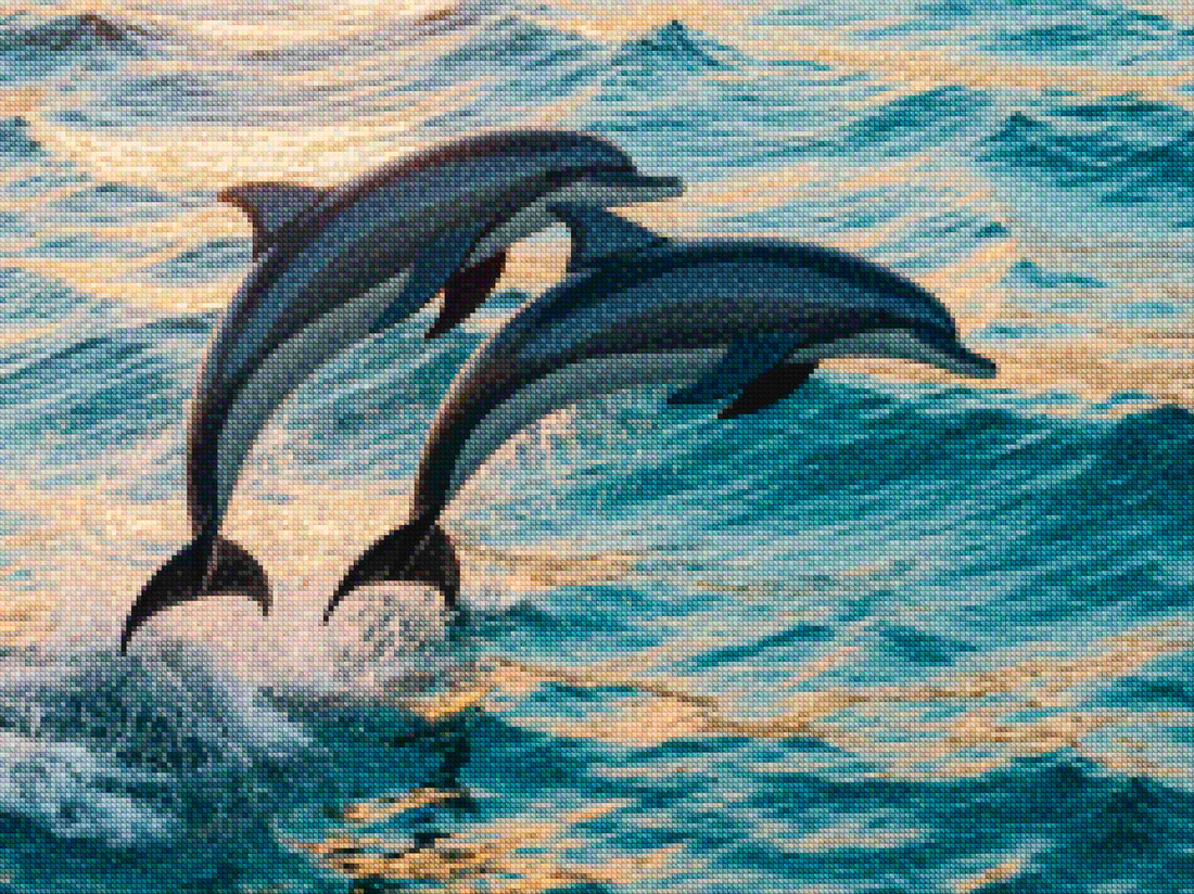 ¿Estás buscando una salida creativa, una actividad divertida para toda la familia? Esto es posible con nuestro set completo y profesional de Diamond Painting – Gracioso dúo de delfines saltando fuera del mar V2. Con él podrás crear los más bellos cuadros en casa. El lienzo de alta calidad y transparencia te permite realizar una obra de arte impresionante en poco tiempo. Libera tu creatividad con tus propias creaciones. Diamond Painting es el pasatiempo perfecto para ti solo o para disfrutar en familia.