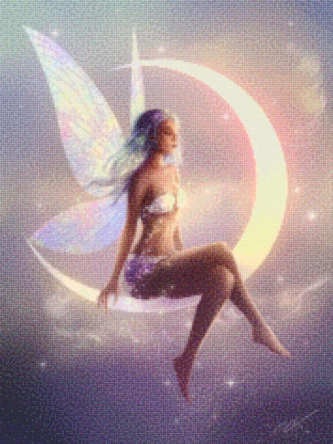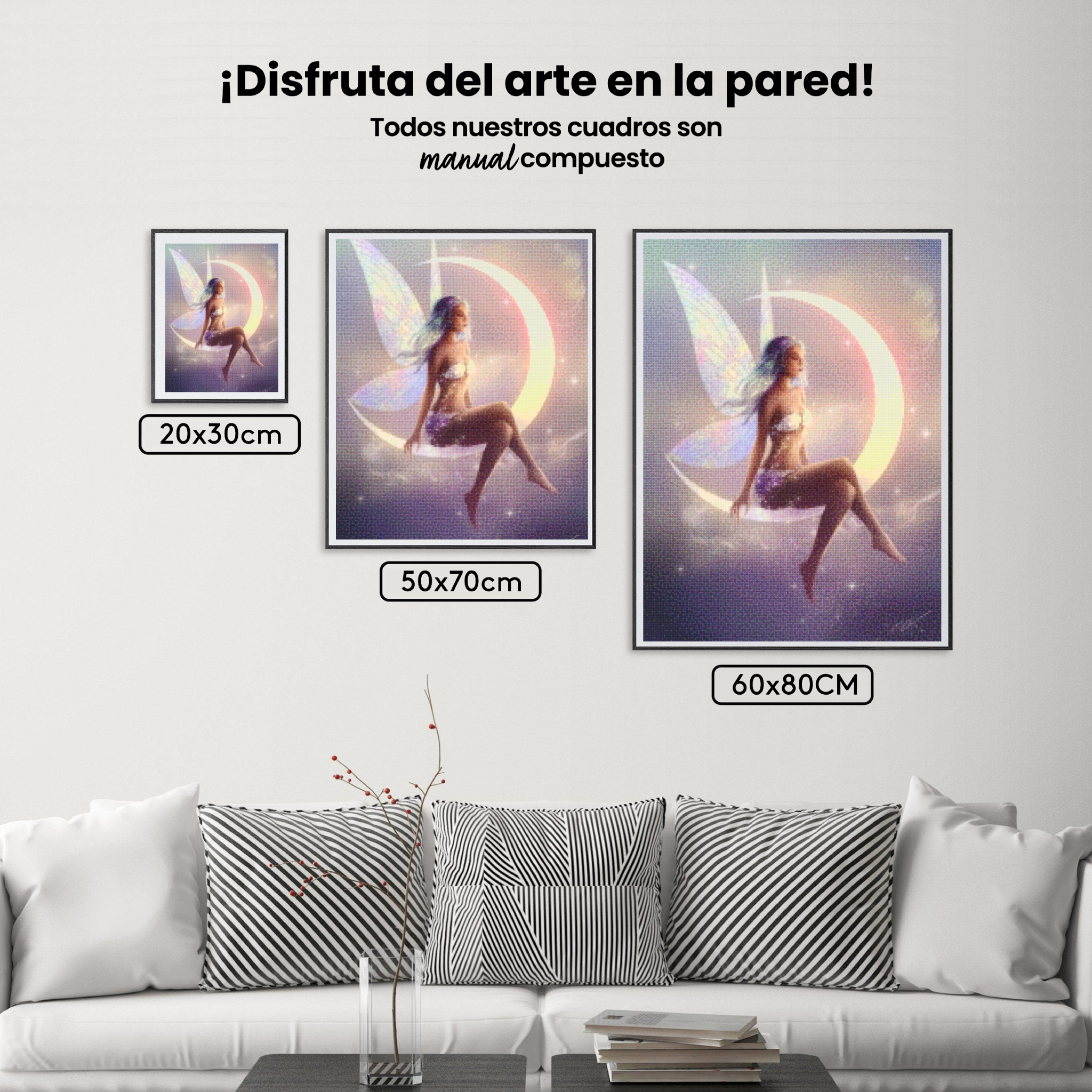 ¿Estás buscando una salida creativa, una actividad divertida para toda la familia? Esto es posible con nuestro set completo y profesional de Diamond Painting – Hada sentada sobre una luna creciente. Con él podrás crear los más bellos cuadros en casa. El lienzo de alta calidad y transparencia te permite realizar una obra de arte impresionante en poco tiempo. Libera tu creatividad con tus propias creaciones. Diamond Painting es el pasatiempo perfecto para ti solo o para disfrutar en familia.