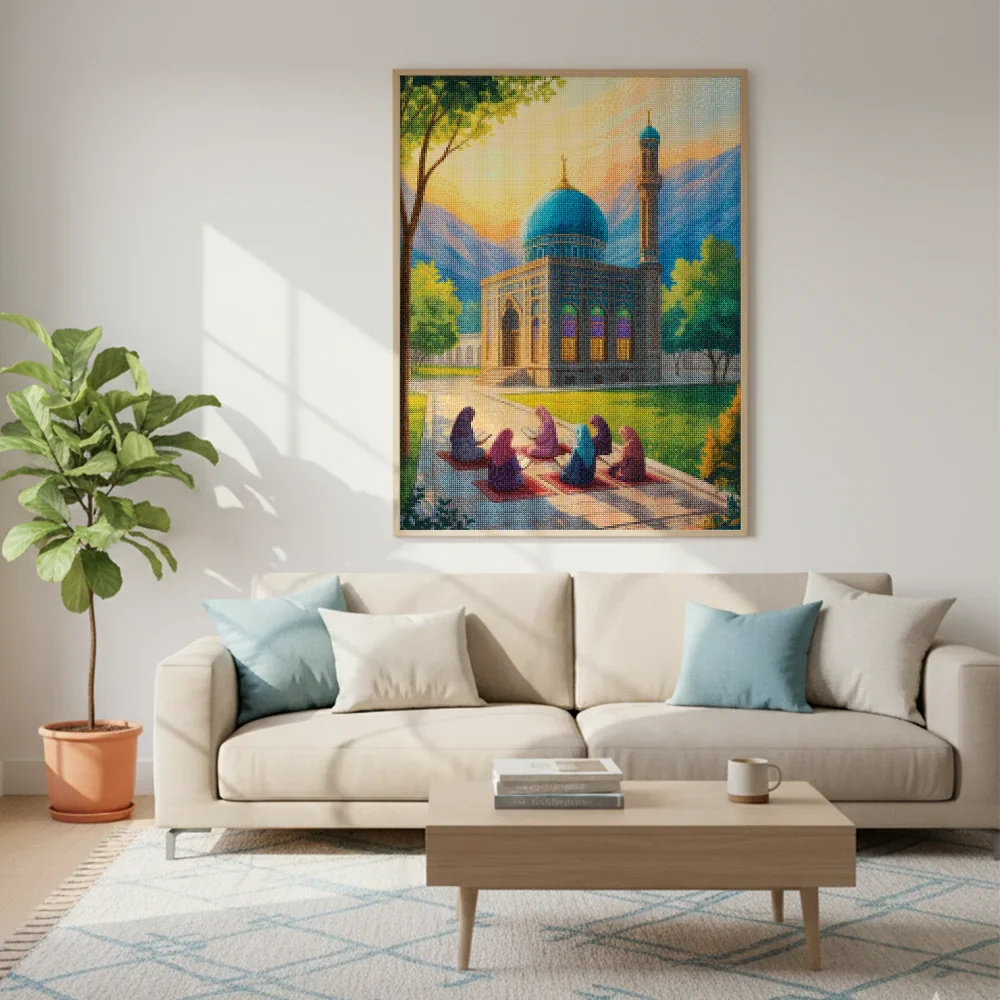¿Estás buscando una salida creativa, una actividad divertida para toda la familia? Esto es posible con nuestro set completo y profesional de Diamond Painting – Iftar en la Mezquita. Con él podrás crear los más bellos cuadros en casa. El lienzo de alta calidad y transparencia te permite realizar una obra de arte impresionante en poco tiempo. Libera tu creatividad con tus propias creaciones. Diamond Painting es el pasatiempo perfecto para ti solo o para disfrutar en familia.