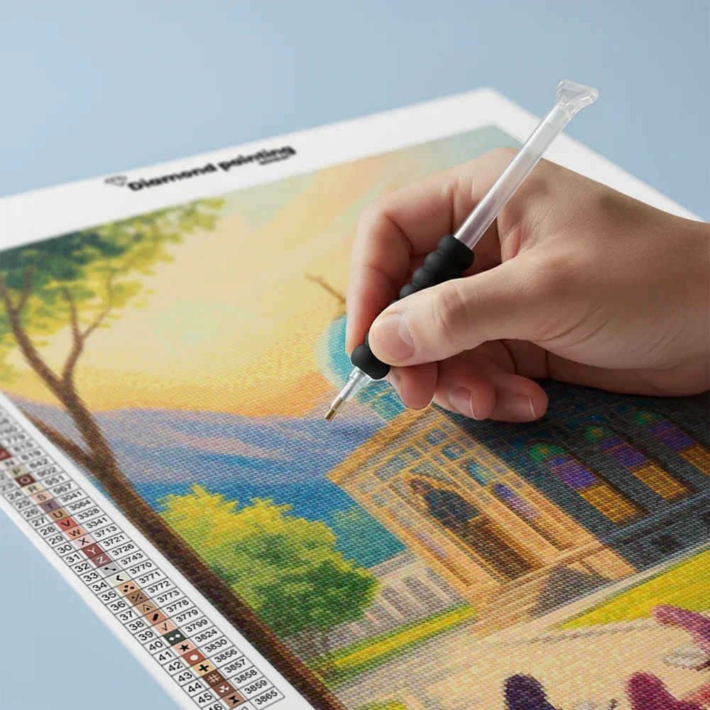 Nuestros kits de Diamond Painting son muy fáciles de usar, así que puedes comenzar a crear desde el primer momento. Antes de empezar a pintar, asegúrate de que el lienzo esté plano y sin arrugas. Alisar el lienzo facilita la colocación de las piedras y la aplicación precisa de los colores. El resto es simple: pon algo de música, enciende una serie, y ¡a pintar! Se recomienda completar primero todos los cuadros de un color antes de pasar al siguiente. Esto te permitirá no tener que limpiar el aplicador tan a menudo y lograr los mejores resultados. Una vez terminada tu pintura, déjala secar al menos un día para evitar manchas y obtener el mejor resultado. Una vez seca, puedes colgarla donde desees.