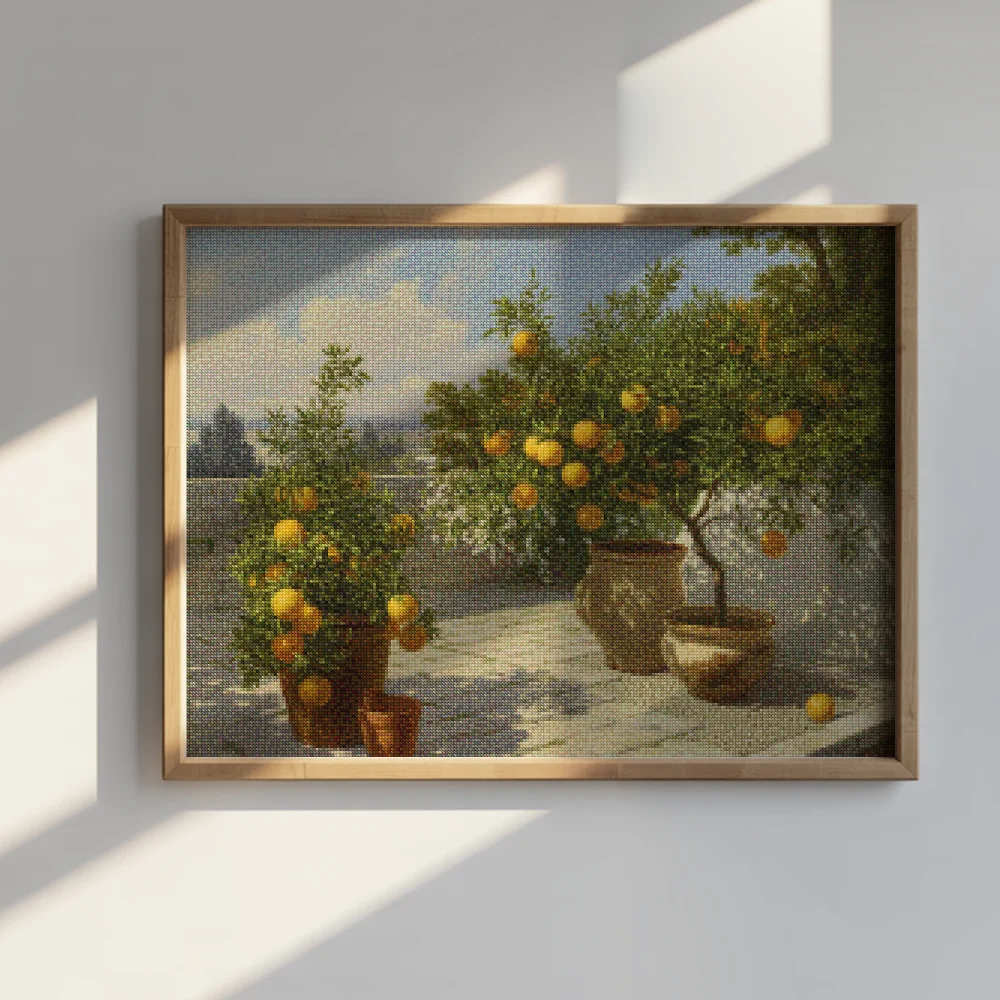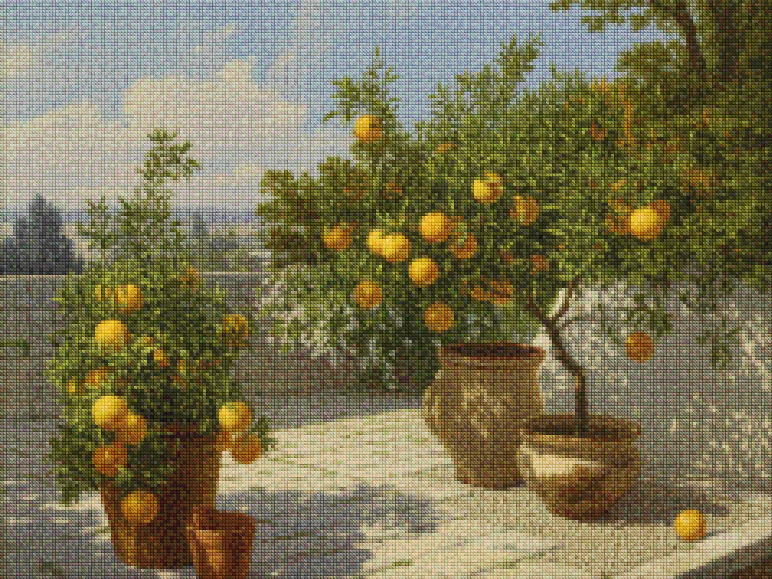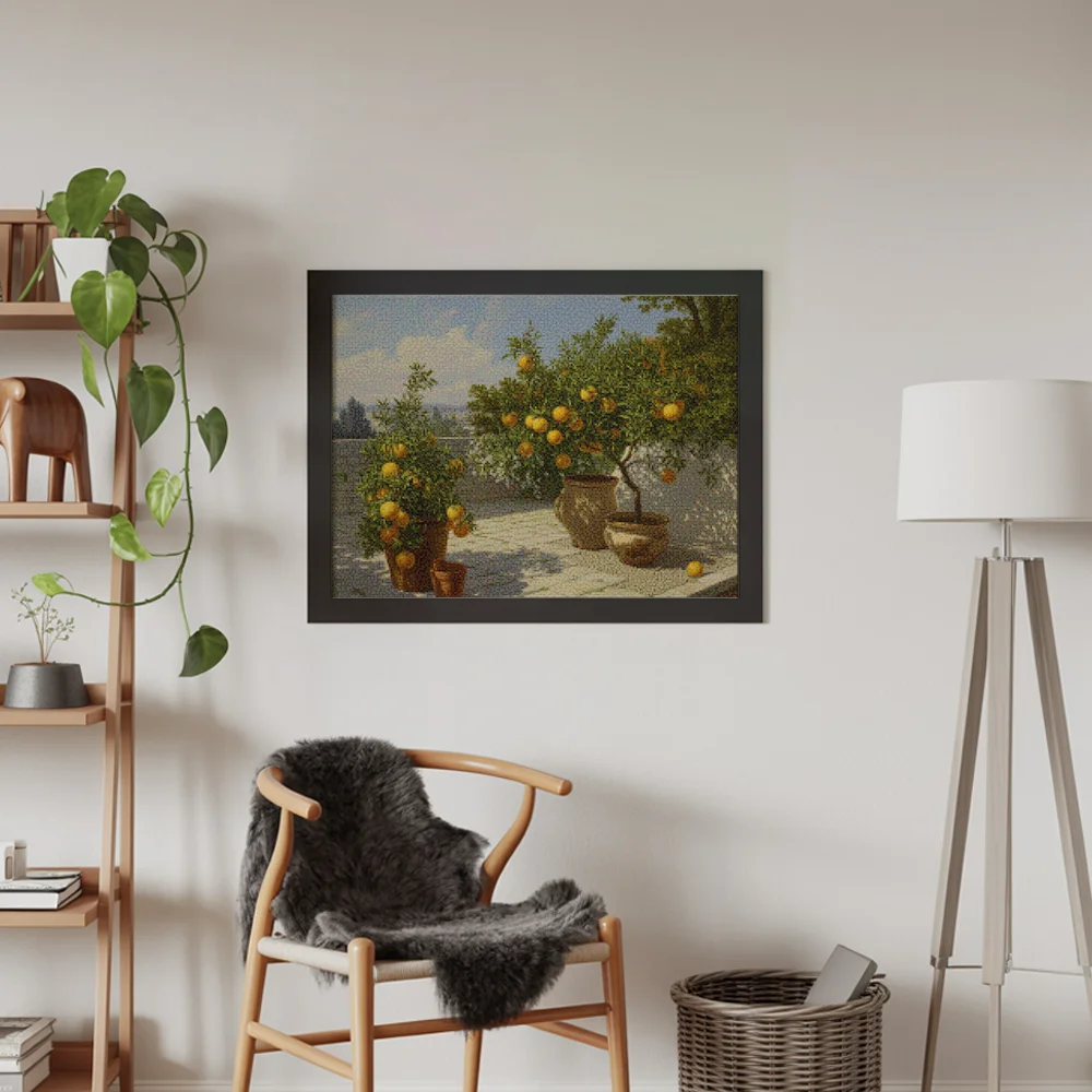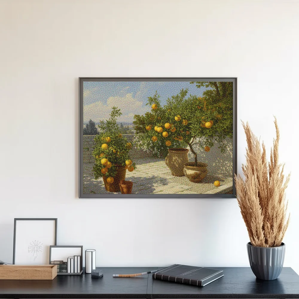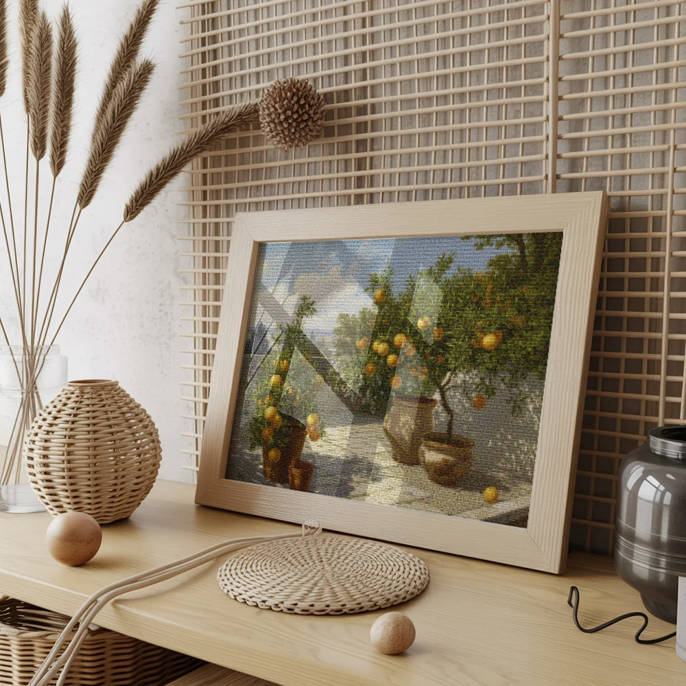 ¿Estás buscando una salida creativa, una actividad divertida para toda la familia? Esto es posible con nuestro set completo y profesional de Diamond Painting – Jardín de cítricos. Con él podrás crear los más bellos cuadros en casa. El lienzo de alta calidad y transparencia te permite realizar una obra de arte impresionante en poco tiempo. Libera tu creatividad con tus propias creaciones. Diamond Painting es el pasatiempo perfecto para ti solo o para disfrutar en familia.