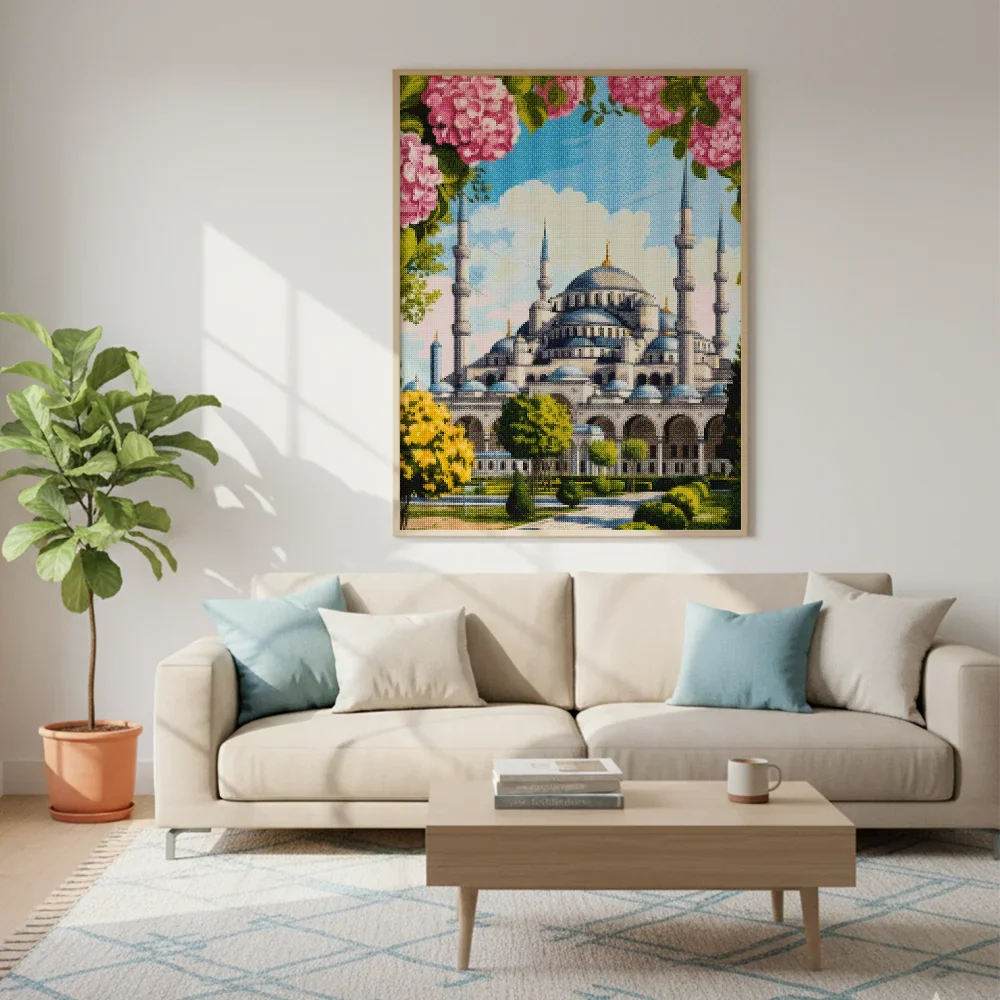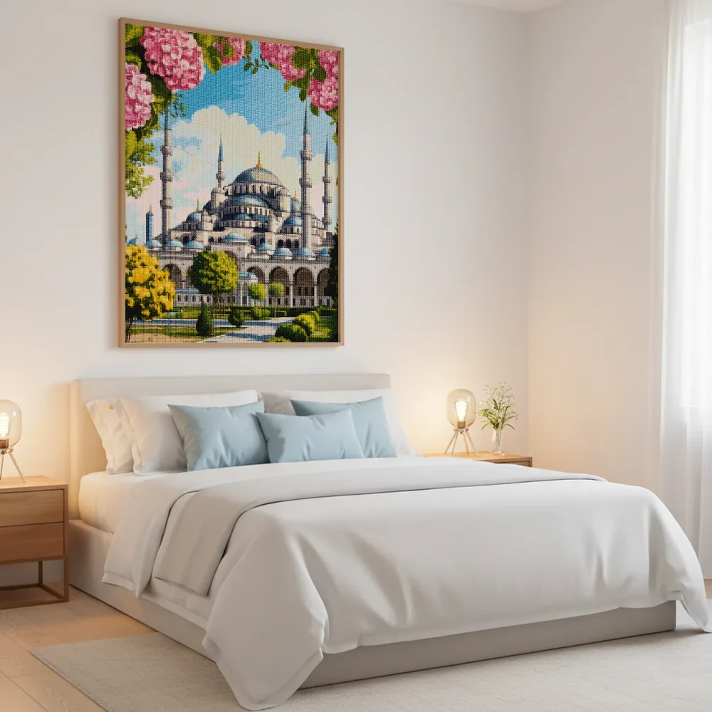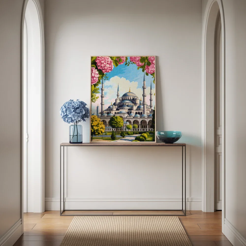 ¿Estás buscando una salida creativa, una actividad divertida para toda la familia? Esto es posible con nuestro set completo y profesional de Diamond Painting – Jardín de la Mezquita Azul. Con él podrás crear los más bellos cuadros en casa. El lienzo de alta calidad y transparencia te permite realizar una obra de arte impresionante en poco tiempo. Libera tu creatividad con tus propias creaciones. Diamond Painting es el pasatiempo perfecto para ti solo o para disfrutar en familia.