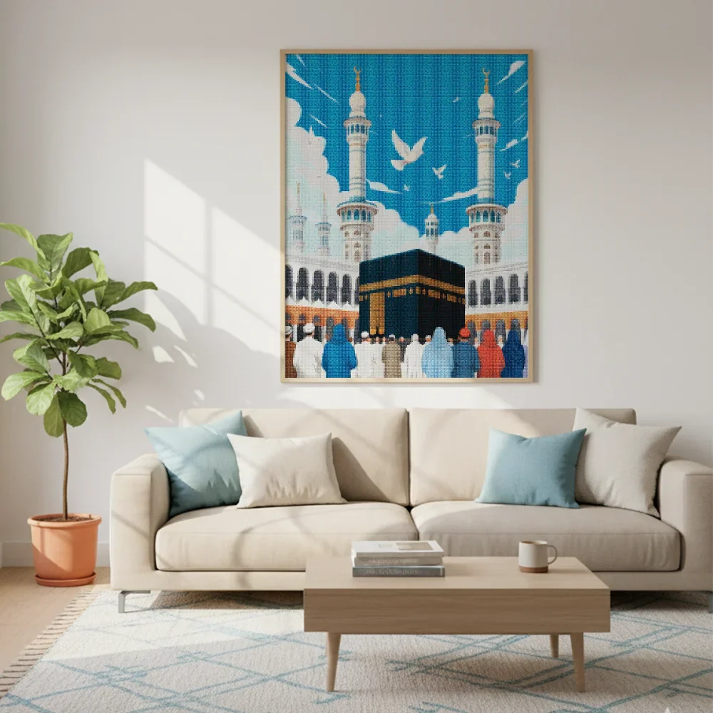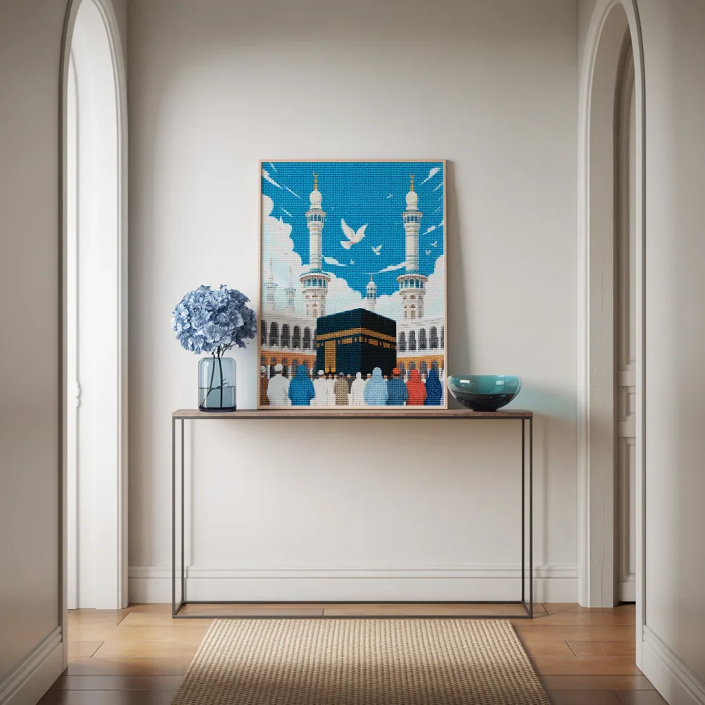 ¿Estás buscando una salida creativa, una actividad divertida para toda la familia? Esto es posible con nuestro set completo y profesional de Diamond Painting – Kaaba Serenidad. Con él podrás crear los más bellos cuadros en casa. El lienzo de alta calidad y transparencia te permite realizar una obra de arte impresionante en poco tiempo. Libera tu creatividad con tus propias creaciones. Diamond Painting es el pasatiempo perfecto para ti solo o para disfrutar en familia.
