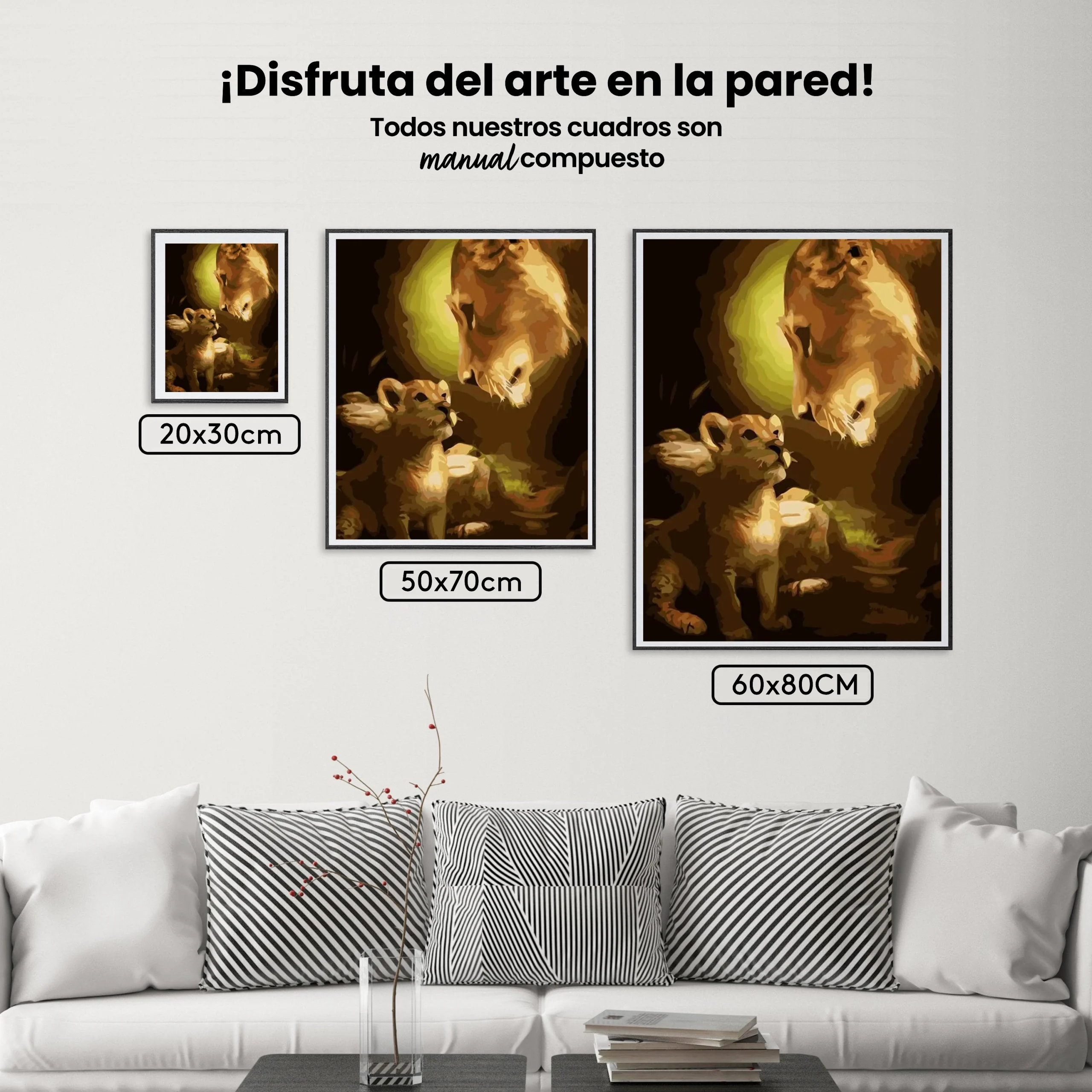 ¿Estás buscando una salida creativa, una actividad divertida para toda la familia? Esto es posible con nuestro set completo y profesional de Diamond Painting – León con cachorro. Con él podrás crear los más bellos cuadros en casa. El lienzo de alta calidad y transparencia te permite realizar una obra de arte impresionante en poco tiempo. Libera tu creatividad con tus propias creaciones. Diamond Painting es el pasatiempo perfecto para ti solo o para disfrutar en familia.