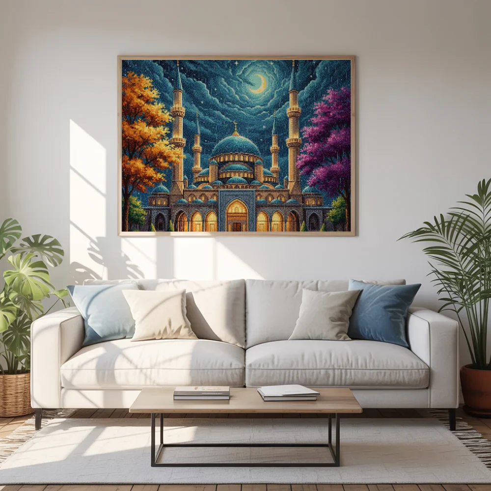 ¿Estás buscando una salida creativa, una actividad divertida para toda la familia? Esto es posible con nuestro set completo y profesional de Diamond Painting – Mezquita Lluviosa. Con él podrás crear los más bellos cuadros en casa. El lienzo de alta calidad y transparencia te permite realizar una obra de arte impresionante en poco tiempo. Libera tu creatividad con tus propias creaciones. Diamond Painting es el pasatiempo perfecto para ti solo o para disfrutar en familia.