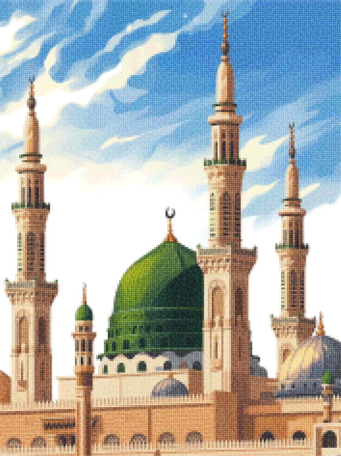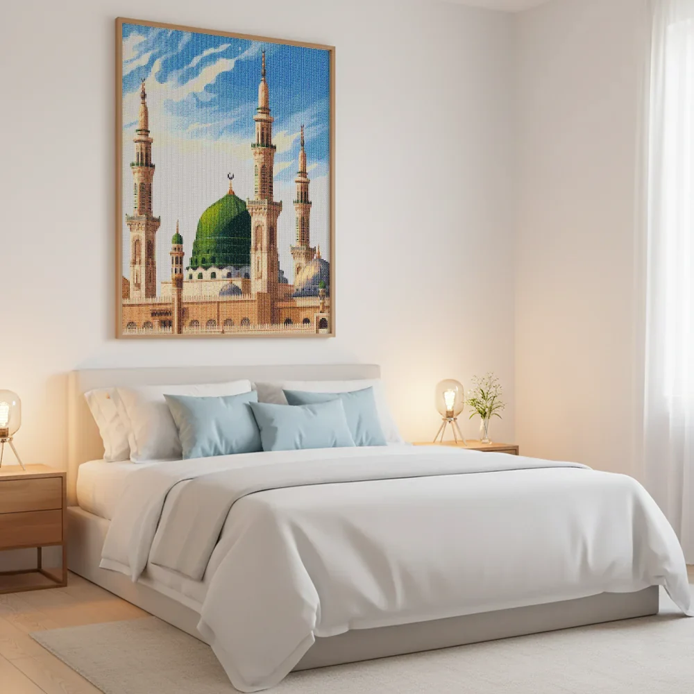 ¿Estás buscando una salida creativa, una actividad divertida para toda la familia? Esto es posible con nuestro set completo y profesional de Diamond Painting – Minaretes Nabawi. Con él podrás crear los más bellos cuadros en casa. El lienzo de alta calidad y transparencia te permite realizar una obra de arte impresionante en poco tiempo. Libera tu creatividad con tus propias creaciones. Diamond Painting es el pasatiempo perfecto para ti solo o para disfrutar en familia.
