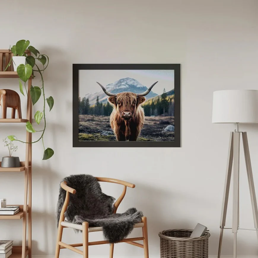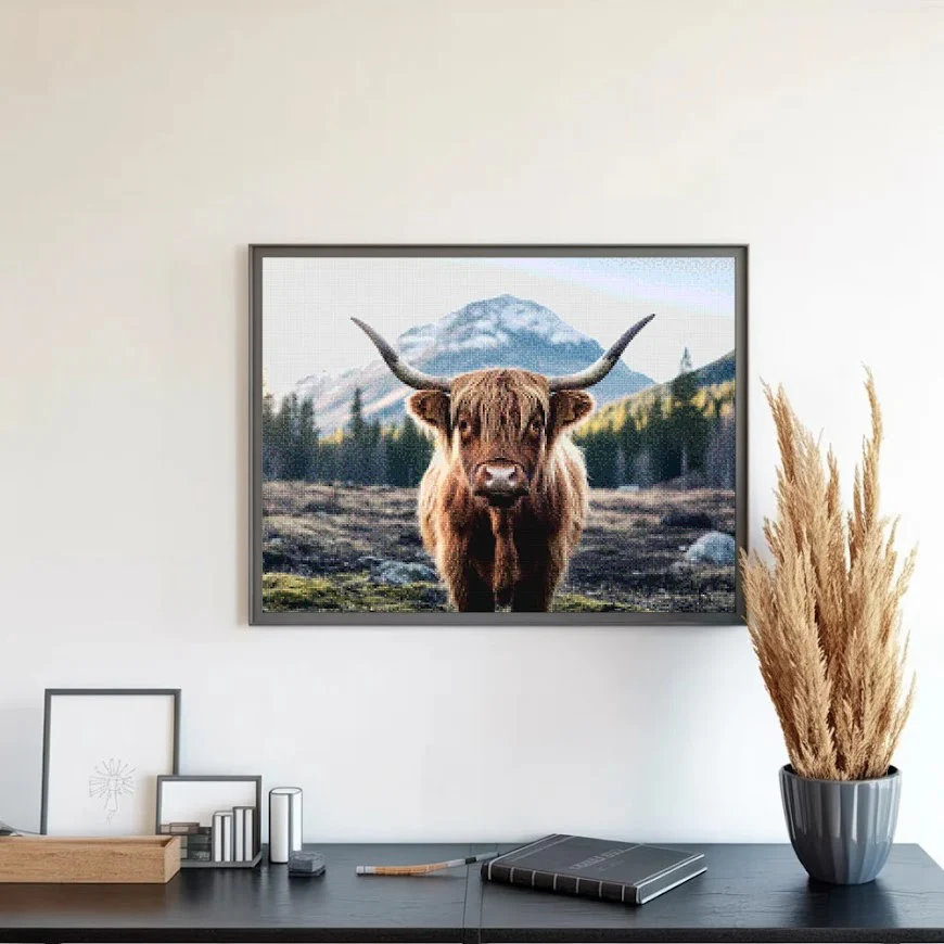 ¿Estás buscando una salida creativa, una actividad divertida para toda la familia? Esto es posible con nuestro set completo y profesional de Diamond Painting – Montañés escocés. Con él podrás crear los más bellos cuadros en casa. El lienzo de alta calidad y transparencia te permite realizar una obra de arte impresionante en poco tiempo. Libera tu creatividad con tus propias creaciones. Diamond Painting es el pasatiempo perfecto para ti solo o para disfrutar en familia.