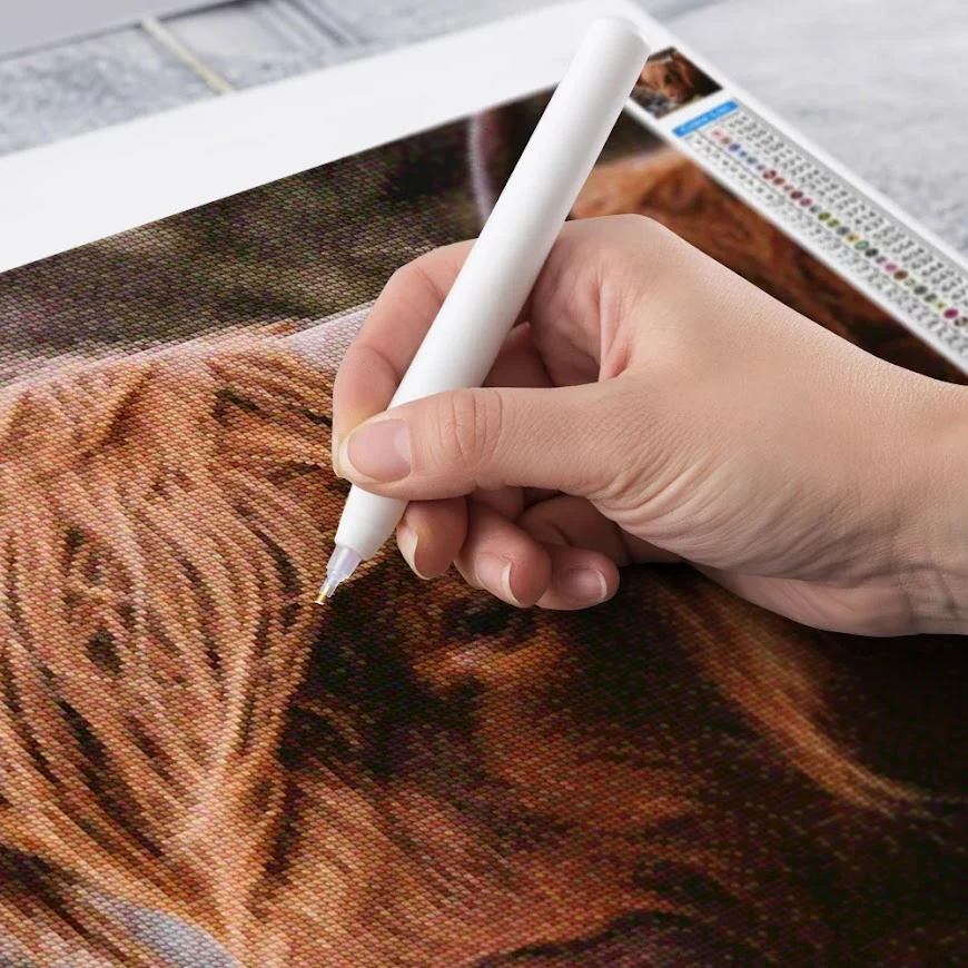 Nuestros kits de Diamond Painting son muy fáciles de usar, así que puedes comenzar a crear desde el primer momento. Antes de empezar a pintar, asegúrate de que el lienzo esté plano y sin arrugas. Alisar el lienzo facilita la colocación de las piedras y la aplicación precisa de los colores. El resto es simple: pon algo de música, enciende una serie, y ¡a pintar! Se recomienda completar primero todos los cuadros de un color antes de pasar al siguiente. Esto te permitirá no tener que limpiar el aplicador tan a menudo y lograr los mejores resultados. Una vez terminada tu pintura, déjala secar al menos un día para evitar manchas y obtener el mejor resultado. Una vez seca, puedes colgarla donde desees.