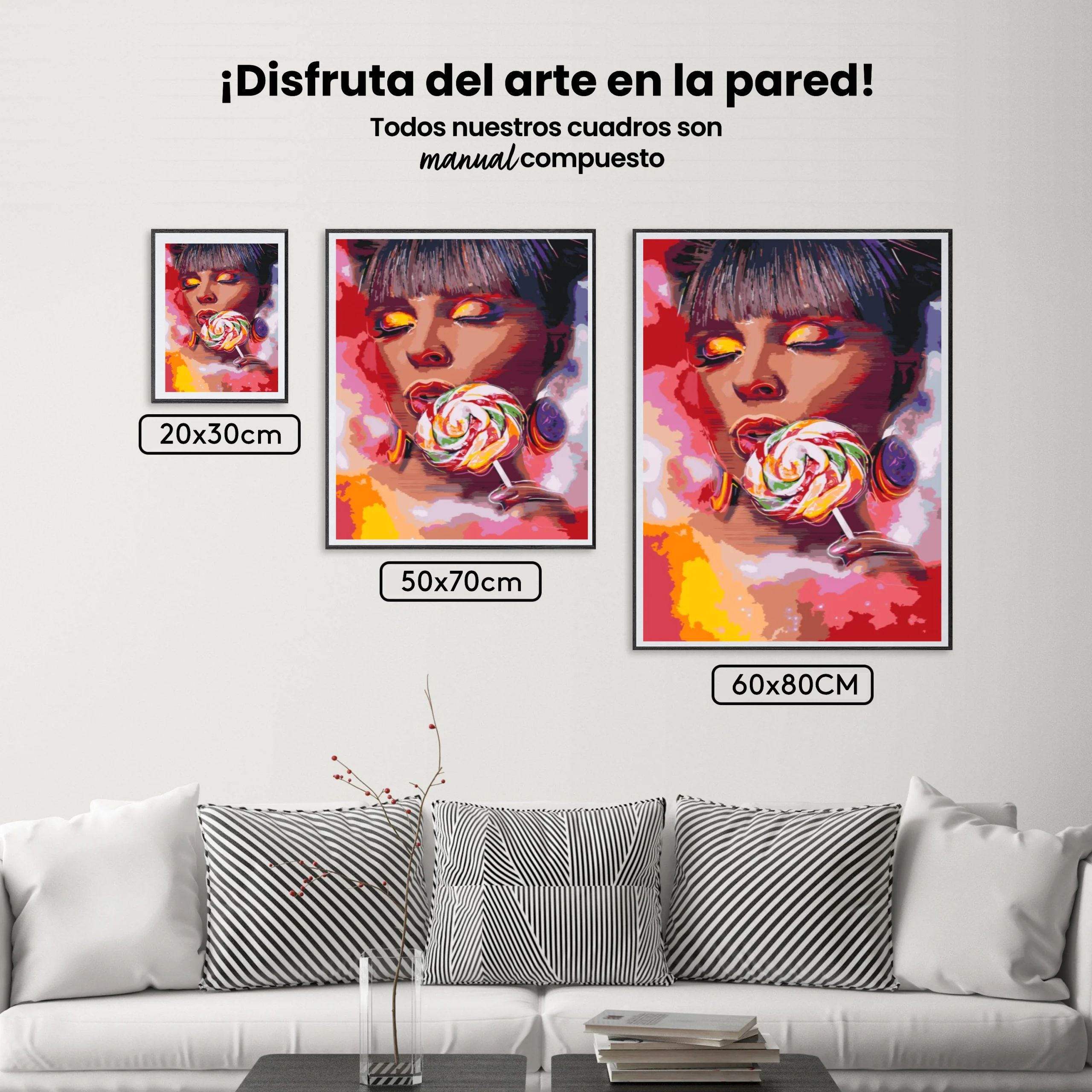 ¿Estás buscando una salida creativa, una actividad divertida para toda la familia? Esto es posible con nuestro set completo y profesional de Diamond Painting – Mujer con una piruleta. Con él podrás crear los más bellos cuadros en casa. El lienzo de alta calidad y transparencia te permite realizar una obra de arte impresionante en poco tiempo. Libera tu creatividad con tus propias creaciones. Diamond Painting es el pasatiempo perfecto para ti solo o para disfrutar en familia.