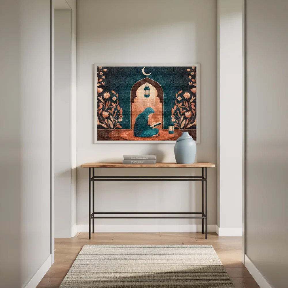 ¿Estás buscando una salida creativa, una actividad divertida para toda la familia? Esto es posible con nuestro set completo y profesional de Diamond Painting – Noche de Devoción. Con él podrás crear los más bellos cuadros en casa. El lienzo de alta calidad y transparencia te permite realizar una obra de arte impresionante en poco tiempo. Libera tu creatividad con tus propias creaciones. Diamond Painting es el pasatiempo perfecto para ti solo o para disfrutar en familia.