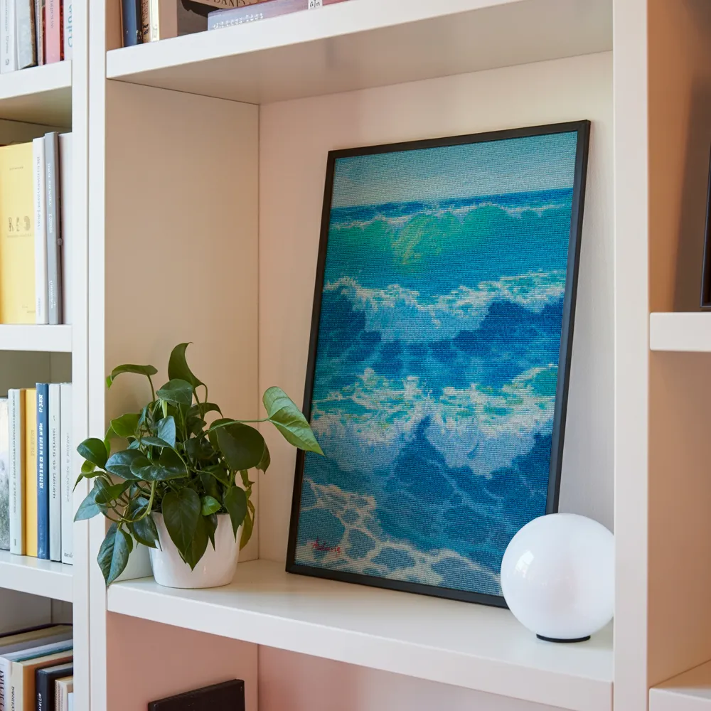 Nuestros kits de Diamond Painting son muy fáciles de usar, así que puedes comenzar a crear desde el primer momento. Antes de empezar a pintar, asegúrate de que el lienzo esté plano y sin arrugas. Alisar el lienzo facilita la colocación de las piedras y la aplicación precisa de los colores. El resto es simple: pon algo de música, enciende una serie, y ¡a pintar! Se recomienda completar primero todos los cuadros de un color antes de pasar al siguiente. Esto te permitirá no tener que limpiar el aplicador tan a menudo y lograr los mejores resultados. Una vez terminada tu pintura, déjala secar al menos un día para evitar manchas y obtener el mejor resultado. Una vez seca, puedes colgarla donde desees.