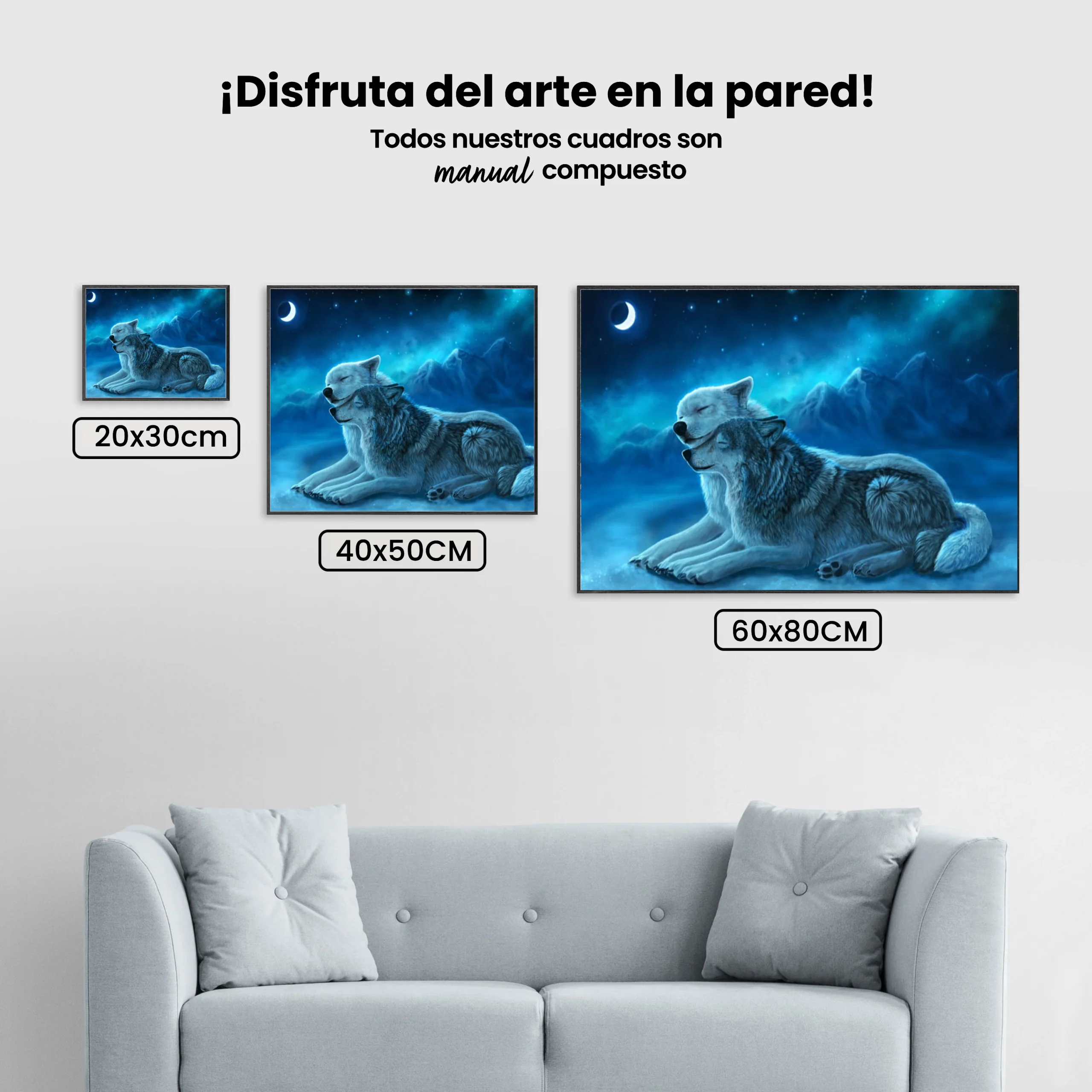 ¿Estás buscando una salida creativa, una actividad divertida para toda la familia? Esto es posible con nuestro set completo y profesional de Diamond Painting – Pareja de lobos. Con él podrás crear los más bellos cuadros en casa. El lienzo de alta calidad y transparencia te permite realizar una obra de arte impresionante en poco tiempo. Libera tu creatividad con tus propias creaciones. Diamond Painting es el pasatiempo perfecto para ti solo o para disfrutar en familia.