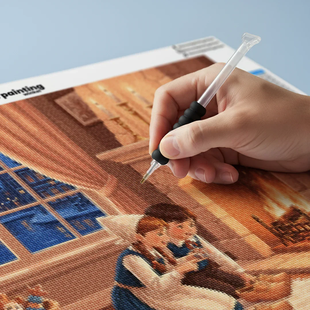 Nuestros kits de Diamond Painting son muy fáciles de usar, así que puedes comenzar a crear desde el primer momento. Antes de empezar a pintar, asegúrate de que el lienzo esté plano y sin arrugas. Alisar el lienzo facilita la colocación de las piedras y la aplicación precisa de los colores. El resto es simple: pon algo de música, enciende una serie, y ¡a pintar! Se recomienda completar primero todos los cuadros de un color antes de pasar al siguiente. Esto te permitirá no tener que limpiar el aplicador tan a menudo y lograr los mejores resultados. Una vez terminada tu pintura, déjala secar al menos un día para evitar manchas y obtener el mejor resultado. Una vez seca, puedes colgarla donde desees.