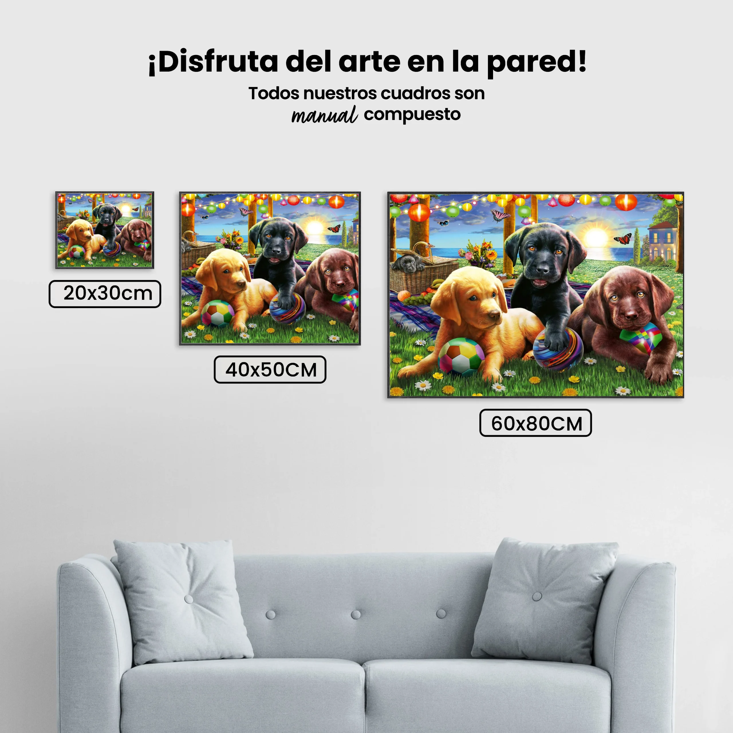 ¿Estás buscando una salida creativa, una actividad divertida para toda la familia? Esto es posible con nuestro set completo y profesional de Diamond Painting – Perros jugando. Con él podrás crear los más bellos cuadros en casa. El lienzo de alta calidad y transparencia te permite realizar una obra de arte impresionante en poco tiempo. Libera tu creatividad con tus propias creaciones. Diamond Painting es el pasatiempo perfecto para ti solo o para disfrutar en familia.
