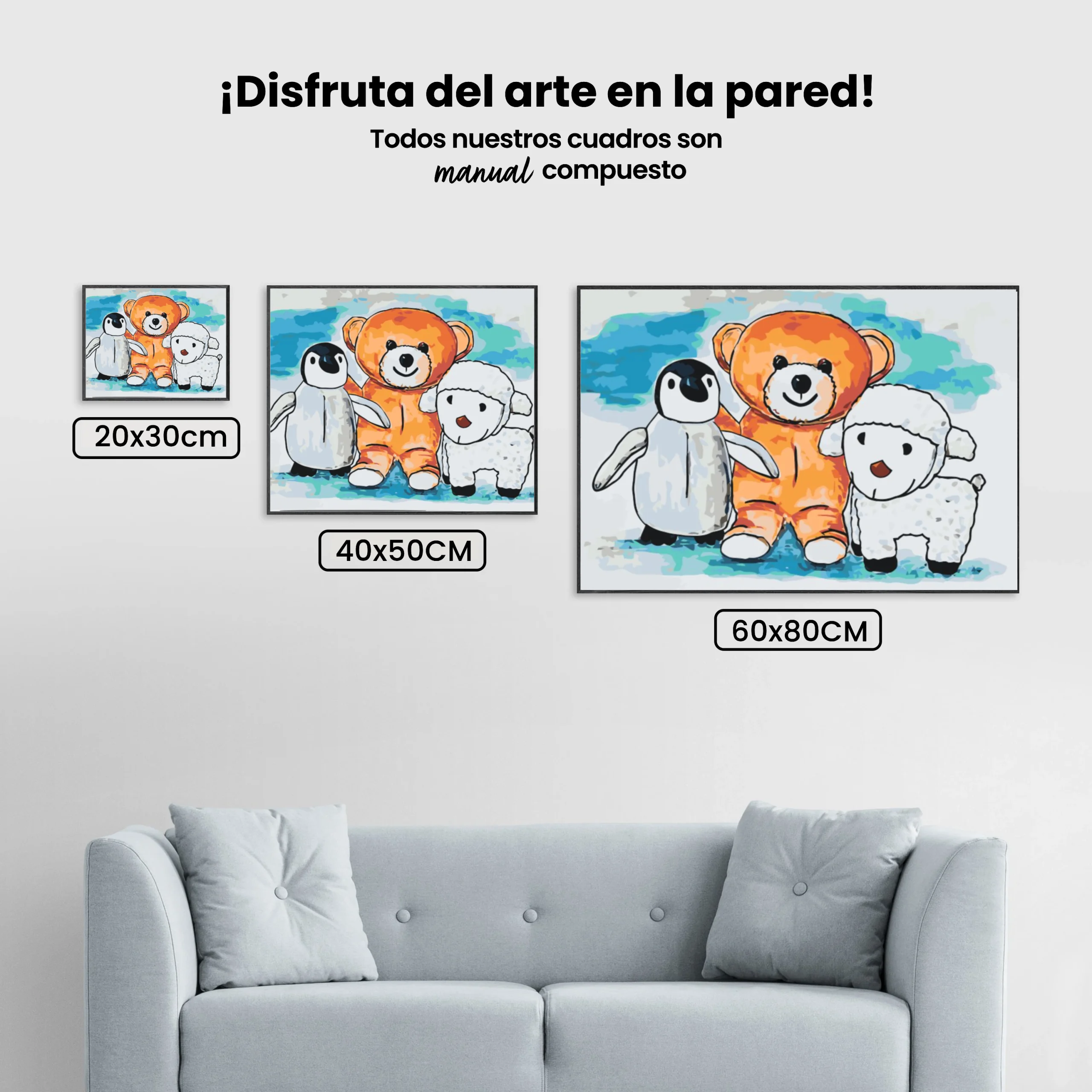 ¿Estás buscando una salida creativa, una actividad divertida para toda la familia? Esto es posible con nuestro set completo y profesional de Diamond Painting – Pingüino, osito y oveja. Con él podrás crear los más bellos cuadros en casa. El lienzo de alta calidad y transparencia te permite realizar una obra de arte impresionante en poco tiempo. Libera tu creatividad con tus propias creaciones. Diamond Painting es el pasatiempo perfecto para ti solo o para disfrutar en familia.