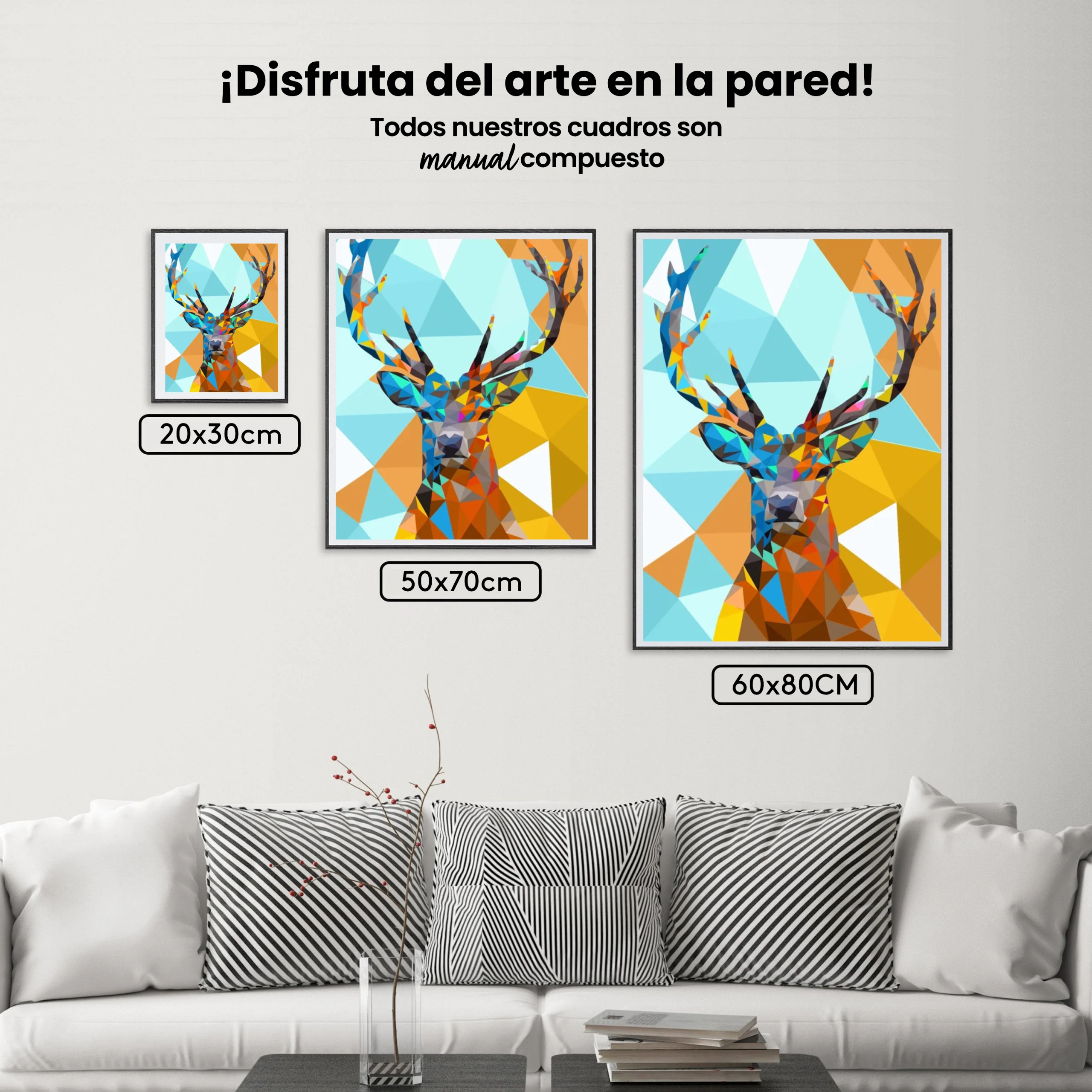 ¿Estás buscando una salida creativa, una actividad divertida para toda la familia? Esto es posible con nuestro set completo y profesional de Diamond Painting – Polígono Cabeza de ciervo 1. Con él podrás crear los más bellos cuadros en casa. El lienzo de alta calidad y transparencia te permite realizar una obra de arte impresionante en poco tiempo. Libera tu creatividad con tus propias creaciones. Diamond Painting es el pasatiempo perfecto para ti solo o para disfrutar en familia.