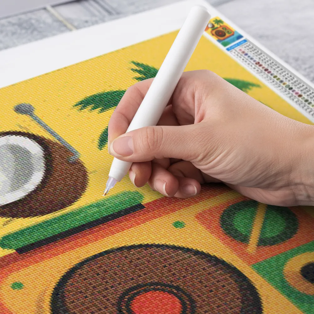 Nuestros kits de Diamond Painting son muy fáciles de usar, así que puedes comenzar a crear desde el primer momento. Antes de empezar a pintar, asegúrate de que el lienzo esté plano y sin arrugas. Alisar el lienzo facilita la colocación de las piedras y la aplicación precisa de los colores. El resto es simple: pon algo de música, enciende una serie, y ¡a pintar! Se recomienda completar primero todos los cuadros de un color antes de pasar al siguiente. Esto te permitirá no tener que limpiar el aplicador tan a menudo y lograr los mejores resultados. Una vez terminada tu pintura, déjala secar al menos un día para evitar manchas y obtener el mejor resultado. Una vez seca, puedes colgarla donde desees.