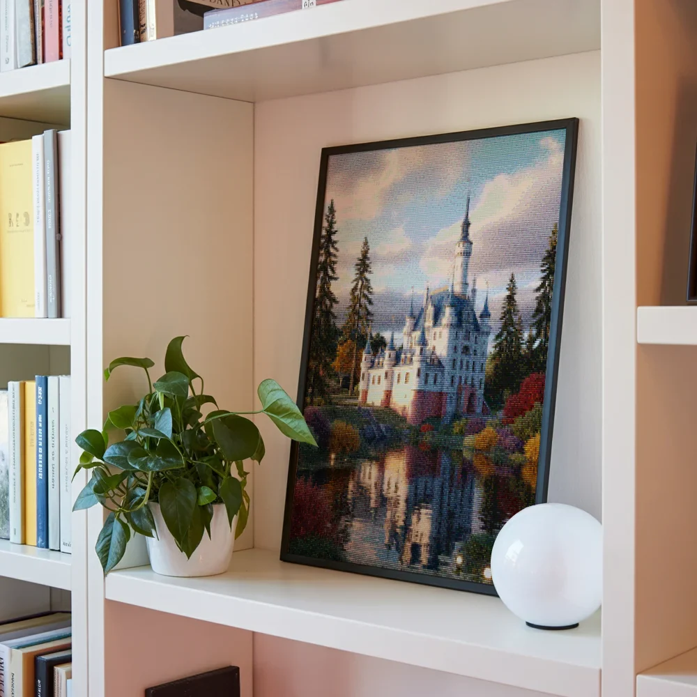 Nuestros kits de Diamond Painting son muy fáciles de usar, así que puedes comenzar a crear desde el primer momento. Antes de empezar a pintar, asegúrate de que el lienzo esté plano y sin arrugas. Alisar el lienzo facilita la colocación de las piedras y la aplicación precisa de los colores. El resto es simple: pon algo de música, enciende una serie, y ¡a pintar! Se recomienda completar primero todos los cuadros de un color antes de pasar al siguiente. Esto te permitirá no tener que limpiar el aplicador tan a menudo y lograr los mejores resultados. Una vez terminada tu pintura, déjala secar al menos un día para evitar manchas y obtener el mejor resultado. Una vez seca, puedes colgarla donde desees.