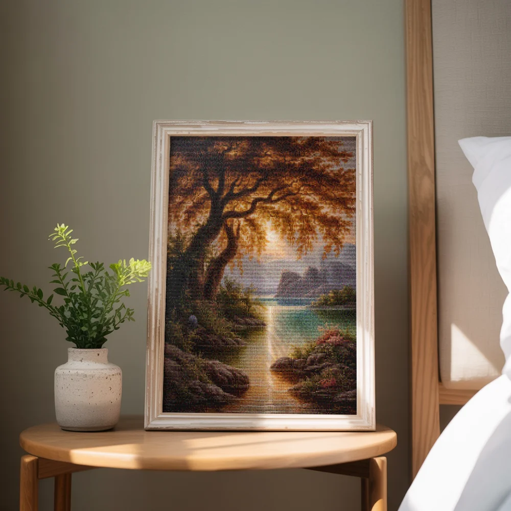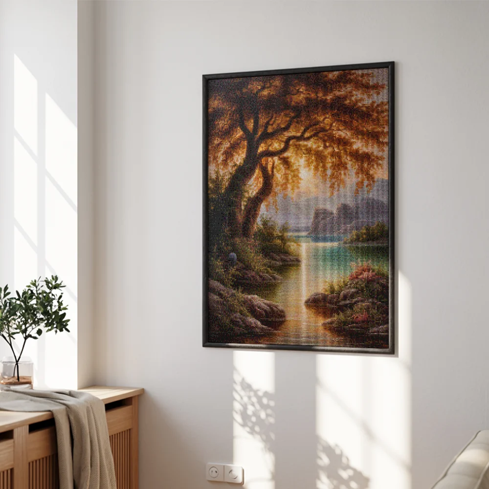 Diamond Painting es una tendencia de pasatiempo en rápido crecimiento. No es sorprendente, ya que es divertido tanto para jóvenes como para adultos, creativos o no. Con esta nueva forma de pintar, incluso alguien sin experiencia previa puede crear maravillosas obras de arte. En el lienzo, los números están claramente impresos y divididos en pequeñas casillas. Cada casilla está vinculada a un número y cada número está vinculado a un color específico de piedra. Completando cuidadosamente las casillas, puedes crear magníficas obras de arte. Con el marco práctico, podrás colgar tu obra en la pared e impresionar a todos los que la vean.