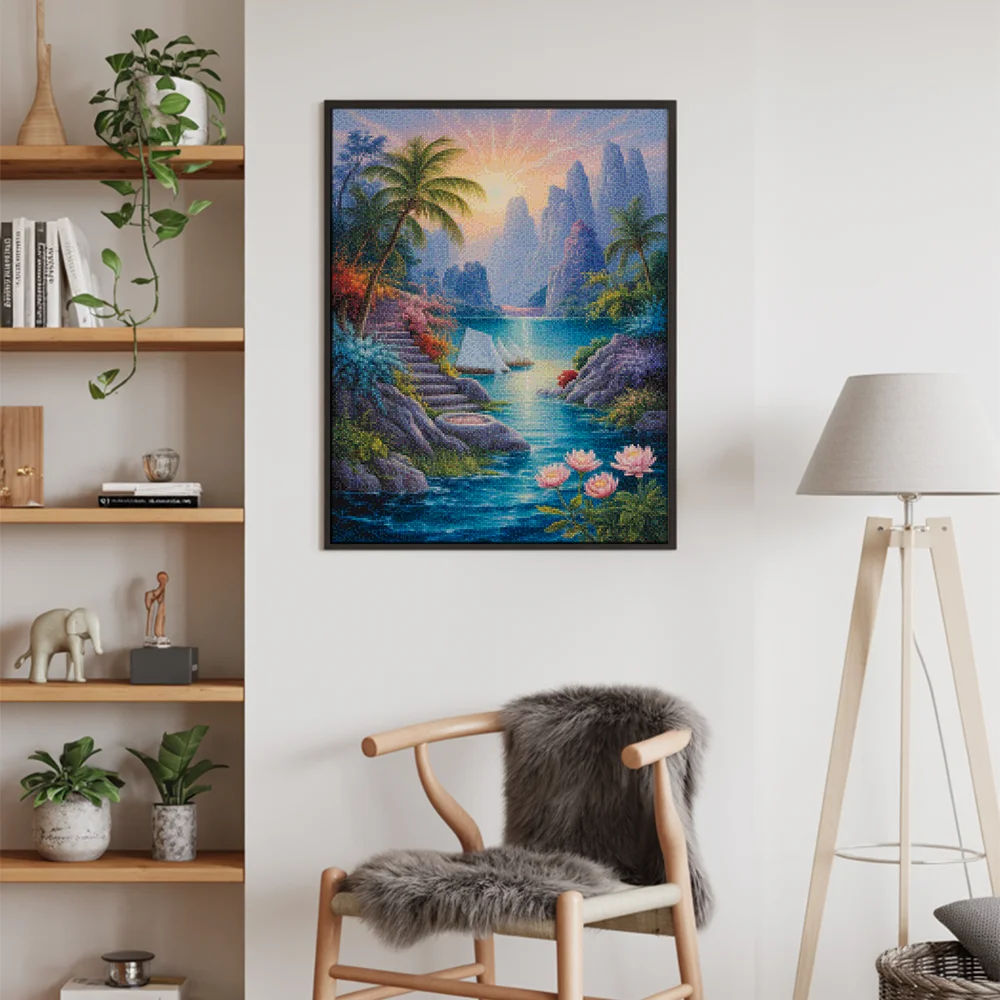 ¿Estás buscando una salida creativa, una actividad divertida para toda la familia? Esto es posible con nuestro set completo y profesional de Diamond Painting – Retiro radiante. Con él podrás crear los más bellos cuadros en casa. El lienzo de alta calidad y transparencia te permite realizar una obra de arte impresionante en poco tiempo. Libera tu creatividad con tus propias creaciones. Diamond Painting es el pasatiempo perfecto para ti solo o para disfrutar en familia.