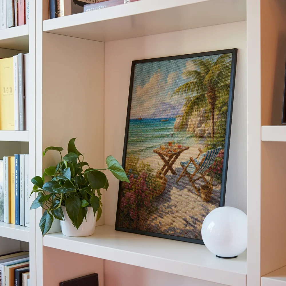 Nuestros kits de Diamond Painting son muy fáciles de usar, así que puedes comenzar a crear desde el primer momento. Antes de empezar a pintar, asegúrate de que el lienzo esté plano y sin arrugas. Alisar el lienzo facilita la colocación de las piedras y la aplicación precisa de los colores. El resto es simple: pon algo de música, enciende una serie, y ¡a pintar! Se recomienda completar primero todos los cuadros de un color antes de pasar al siguiente. Esto te permitirá no tener que limpiar el aplicador tan a menudo y lograr los mejores resultados. Una vez terminada tu pintura, déjala secar al menos un día para evitar manchas y obtener el mejor resultado. Una vez seca, puedes colgarla donde desees.