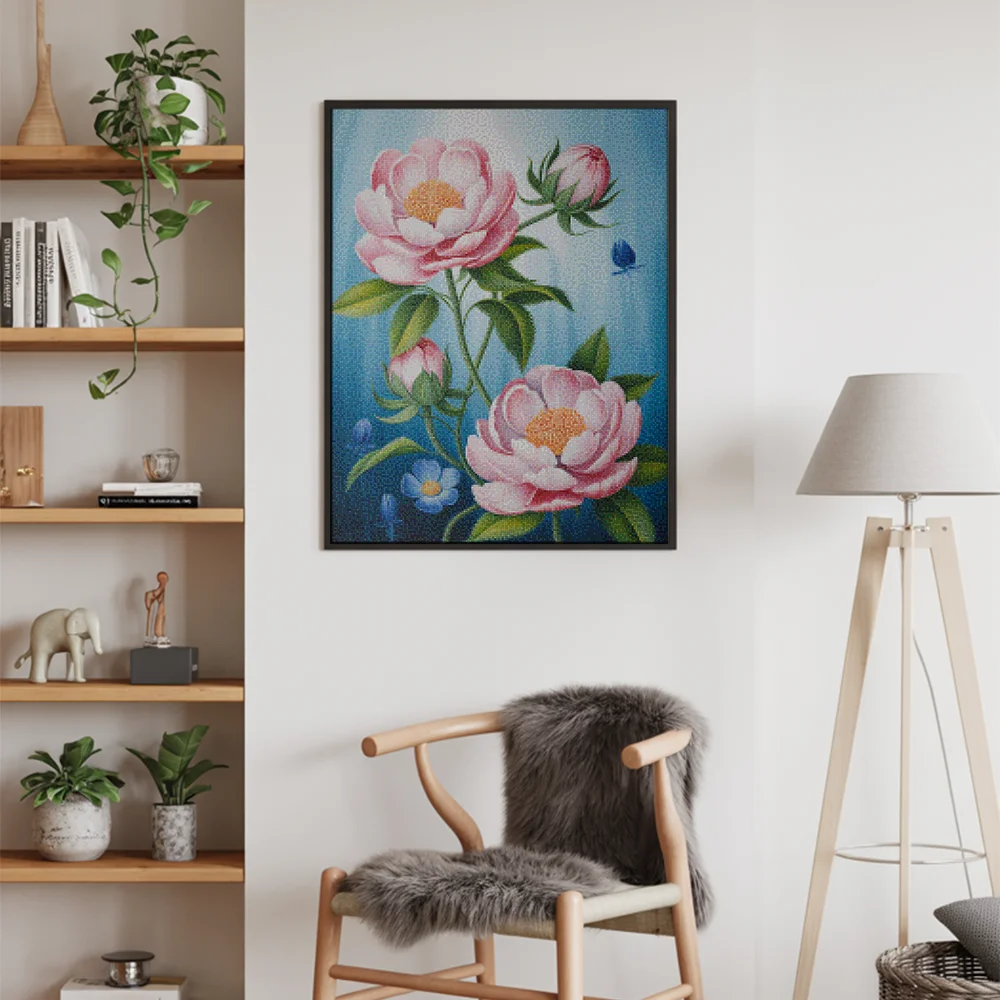 Diamond Painting es una tendencia de pasatiempo en rápido crecimiento. No es sorprendente, ya que es divertido tanto para jóvenes como para adultos, creativos o no. Con esta nueva forma de pintar, incluso alguien sin experiencia previa puede crear maravillosas obras de arte. En el lienzo, los números están claramente impresos y divididos en pequeñas casillas. Cada casilla está vinculada a un número y cada número está vinculado a un color específico de piedra. Completando cuidadosamente las casillas, puedes crear magníficas obras de arte. Con el marco práctico, podrás colgar tu obra en la pared e impresionar a todos los que la vean.