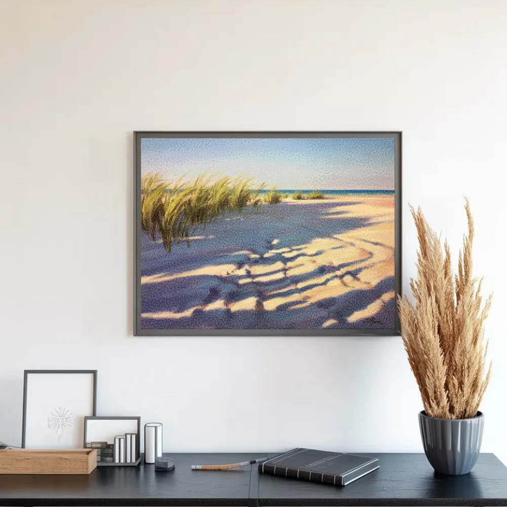 ¿Estás buscando una salida creativa, una actividad divertida para toda la familia? Esto es posible con nuestro set completo y profesional de Diamond Painting – Sombras en la arena. Con él podrás crear los más bellos cuadros en casa. El lienzo de alta calidad y transparencia te permite realizar una obra de arte impresionante en poco tiempo. Libera tu creatividad con tus propias creaciones. Diamond Painting es el pasatiempo perfecto para ti solo o para disfrutar en familia.