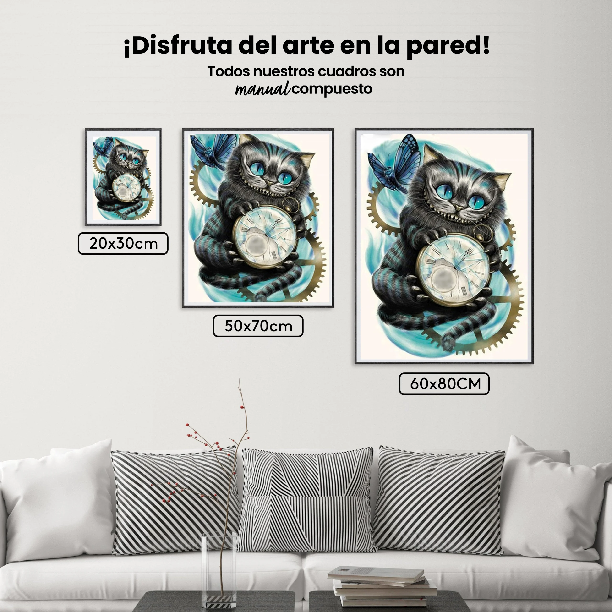 ¿Estás buscando una salida creativa, una actividad divertida para toda la familia? Esto es posible con nuestro set completo y profesional de Diamond Painting – Sonrisa Cheshire. Con él podrás crear los más bellos cuadros en casa. El lienzo de alta calidad y transparencia te permite realizar una obra de arte impresionante en poco tiempo. Libera tu creatividad con tus propias creaciones. Diamond Painting es el pasatiempo perfecto para ti solo o para disfrutar en familia.