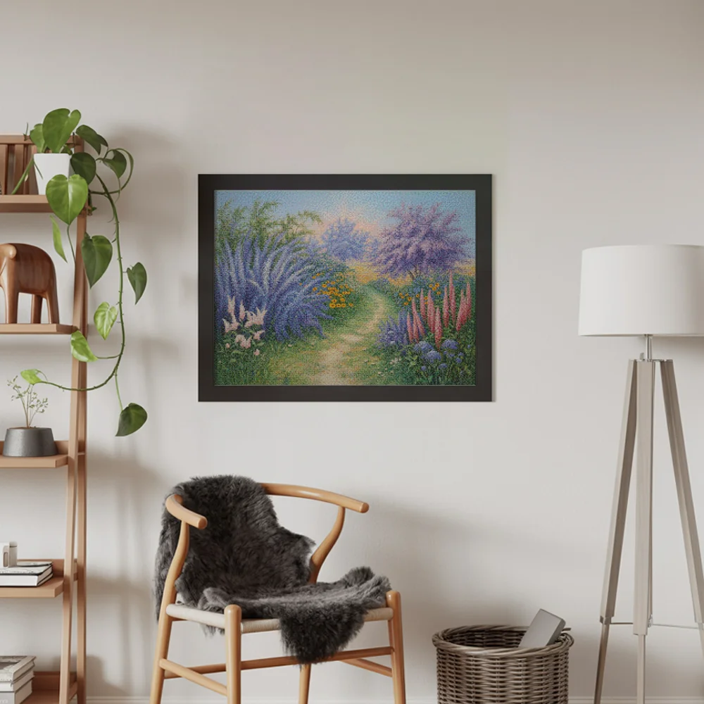 Nuestros kits de Diamond Painting son muy fáciles de usar, así que puedes comenzar a crear desde el primer momento. Antes de empezar a pintar, asegúrate de que el lienzo esté plano y sin arrugas. Alisar el lienzo facilita la colocación de las piedras y la aplicación precisa de los colores. El resto es simple: pon algo de música, enciende una serie, y ¡a pintar! Se recomienda completar primero todos los cuadros de un color antes de pasar al siguiente. Esto te permitirá no tener que limpiar el aplicador tan a menudo y lograr los mejores resultados. Una vez terminada tu pintura, déjala secar al menos un día para evitar manchas y obtener el mejor resultado. Una vez seca, puedes colgarla donde desees.