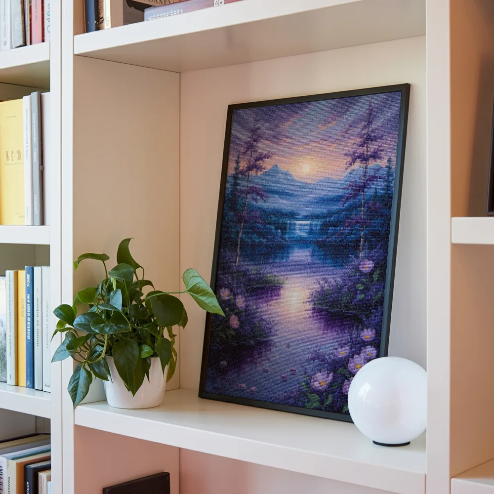 Nuestros kits de Diamond Painting son muy fáciles de usar, así que puedes comenzar a crear desde el primer momento. Antes de empezar a pintar, asegúrate de que el lienzo esté plano y sin arrugas. Alisar el lienzo facilita la colocación de las piedras y la aplicación precisa de los colores. El resto es simple: pon algo de música, enciende una serie, y ¡a pintar! Se recomienda completar primero todos los cuadros de un color antes de pasar al siguiente. Esto te permitirá no tener que limpiar el aplicador tan a menudo y lograr los mejores resultados. Una vez terminada tu pintura, déjala secar al menos un día para evitar manchas y obtener el mejor resultado. Una vez seca, puedes colgarla donde desees.
