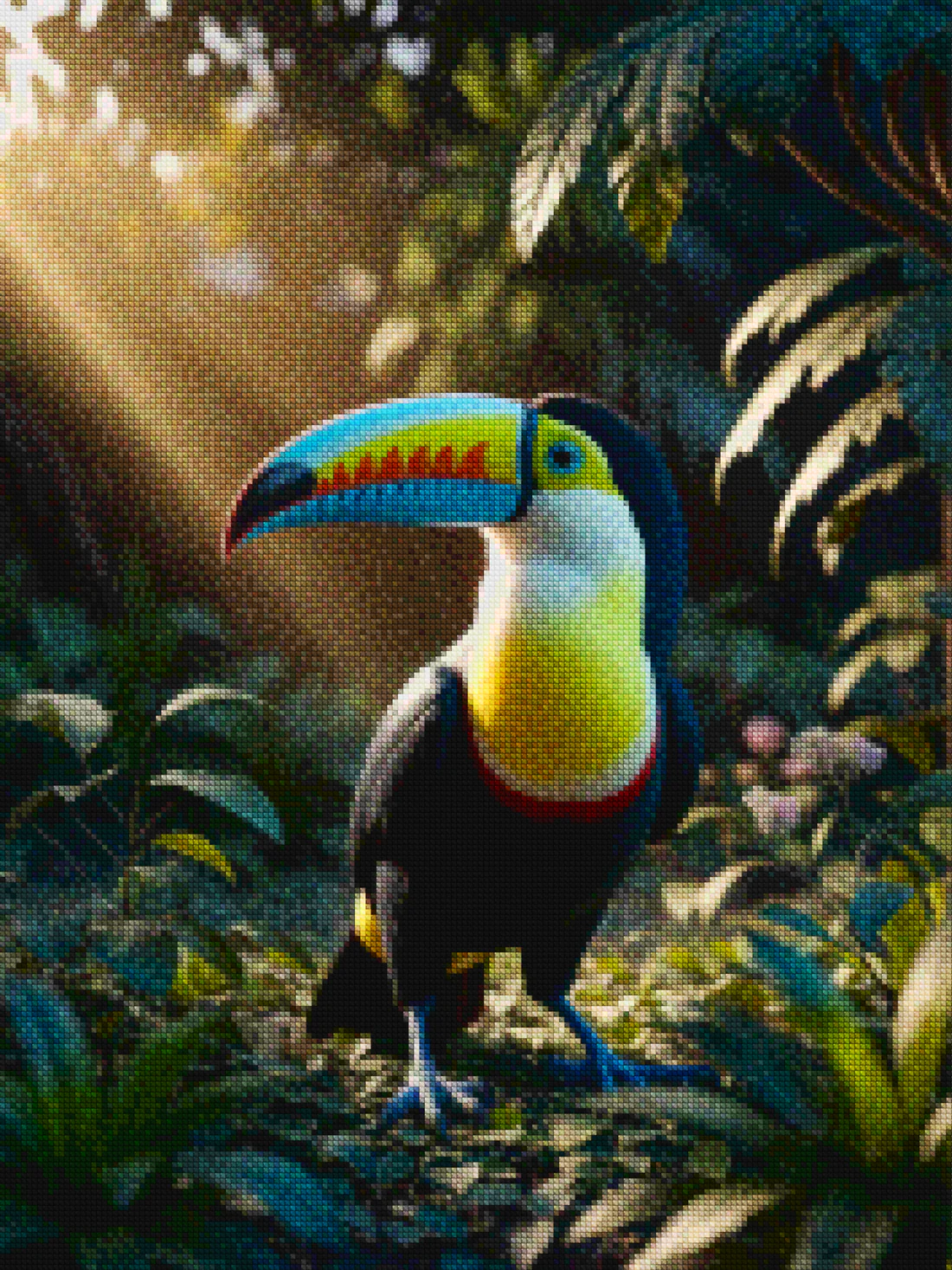 ¿Estás buscando una salida creativa, una actividad divertida para toda la familia? Esto es posible con nuestro set completo y profesional de Diamond Painting – Vivaz tucán en una selva tropical. Con él podrás crear los más bellos cuadros en casa. El lienzo de alta calidad y transparencia te permite realizar una obra de arte impresionante en poco tiempo. Libera tu creatividad con tus propias creaciones. Diamond Painting es el pasatiempo perfecto para ti solo o para disfrutar en familia.